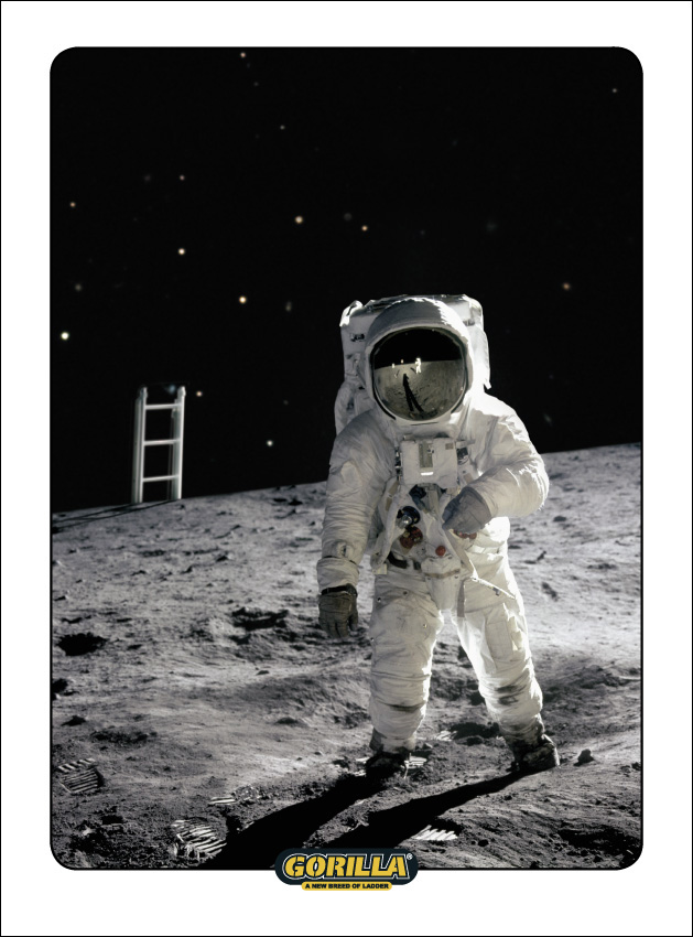 Лестница в небо в исполнении Fenton StephensАвстралийское агентство Fenton Stephens на плакатах рекламирующих лестницы под брендом Gorilla показывает нам, что они подходят даже для таких необычных условий как космос. Если лестницам Gorilla доверились космонавты, вы сможете им доверять смело.Надпись: "Новая порода лестниц" Состав творческой группы Рекламное агентство: Fenton Stephens, South Melbourne, Australia Арт директор: Alex Fenton Копирайтер: Simon Wong |