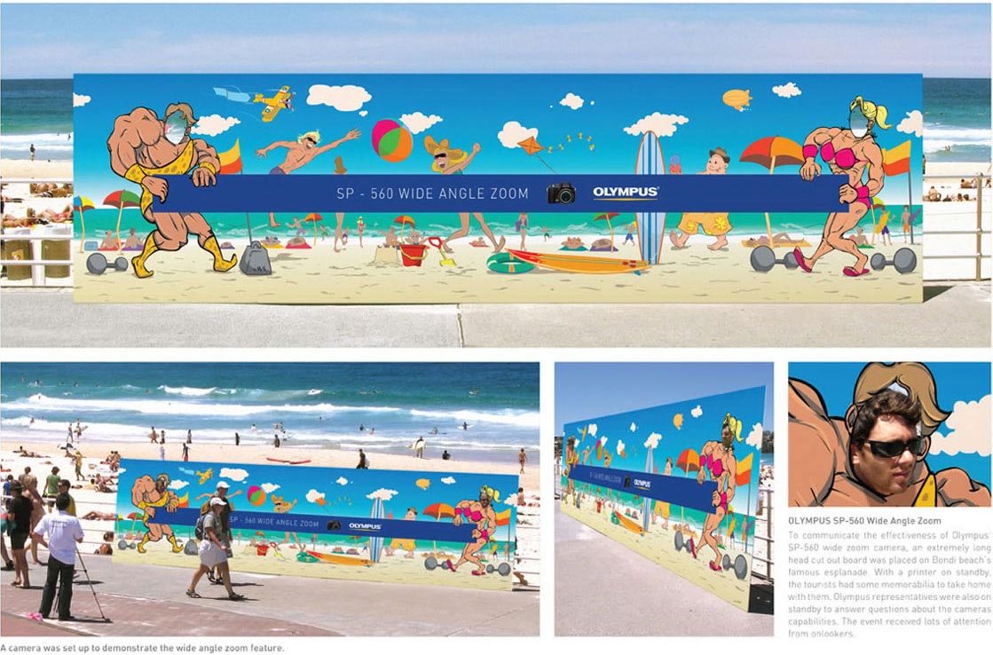 Пляжная реклама Olympus от JWT SydneyДля того чтобы доказать ЦА эффективность широкого зума фотоаппарата Olympus SP-560, австралийское агентство JWT Sydney установила на пляже Bondi неимоверно широкую картину с напечатанной рекламой. Тем самым туристы получили шанс увезти домой необычную фотографию и получить сведения о характеристиках данной модели от Olympus.Состав творческой группы Рекламное агентство: JWT Sydney, Australia Исполнительные творческие директора: Andy DiLallo, Jay Benjamin Арт директора: Blair Kimber, John Lam Иллюстратор: Morgan Denton |