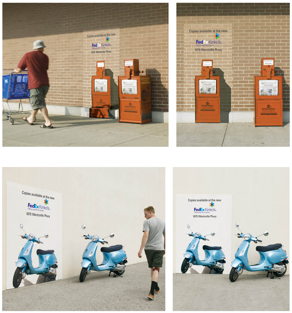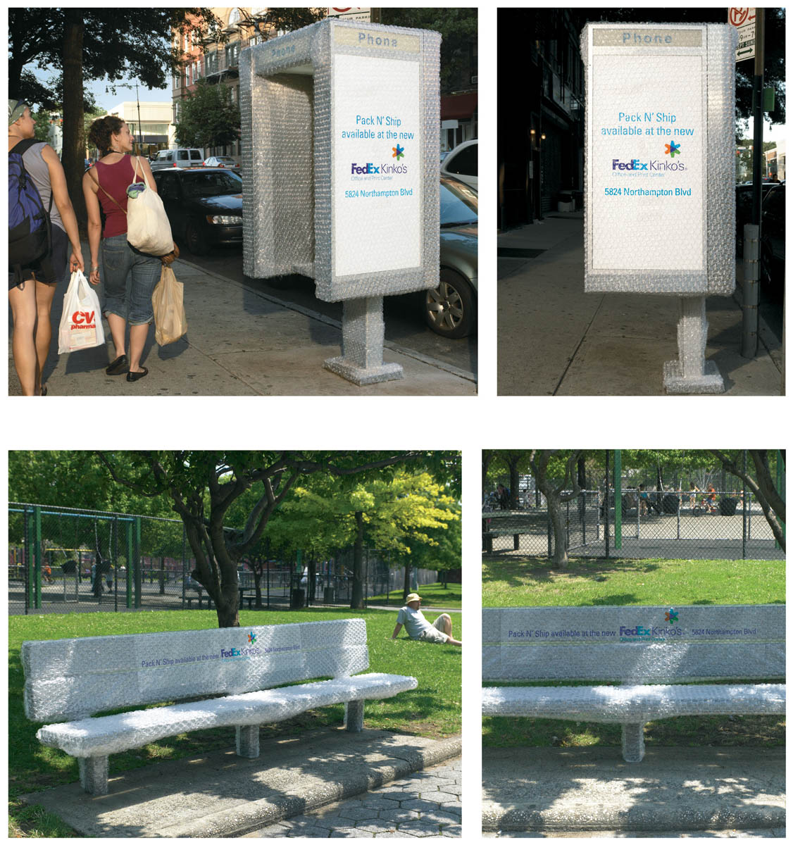 Центры FedEx Kinko's упаковали, скопировали и доставили некоторые предметы городского интерьераFedEx Kinko's - это сеть магазинов, принадлежащих FedEx Corporation и предоставляющих услуги в области печати, копирования, переплетения, а также осуществляющих упаковку и доставку. Сеть насчитывает более 1400 центров в Азии, Австралии, Европе и Северной Америке.Эта рекламная кампания, разработанная агентством BBDO, предназначена для американской аудитории и анонсирует открытие новых центров FedEx Kinko's. Именно поэтому работники агентства "упаковали", "скопировали" или "доставили" некоторые предметы городского интерьера. Похожий ход уже предпринимало немецкое агентство Jung von Matt, создавая рекламную кампанию для DHL. Агентство: BBDO, Нью-Йорк, США Главный творческий директор: David Lubars Исполнительный творческий директор: Eric Silver Арт директор: Art Director Копирайтер: Adam Kanzer |