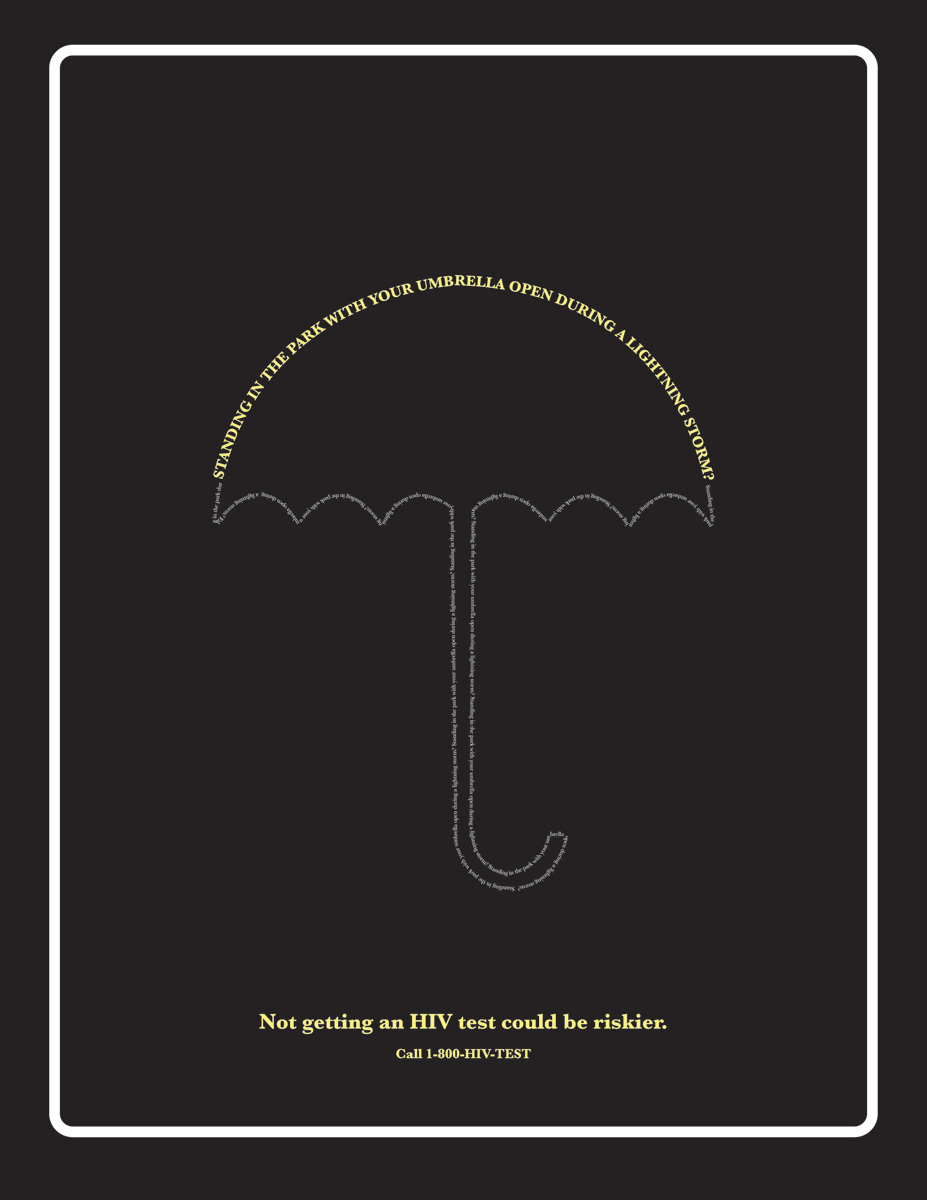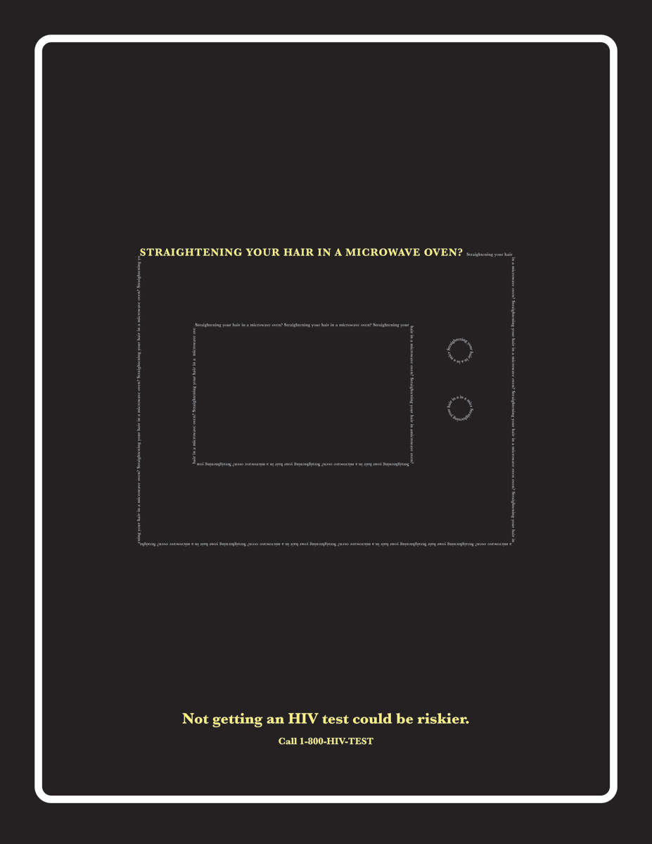 Neiman Group призывает провериться на ВИЧЭта социальная реклама, призывающая людей сделать тест на ВИЧ, создана агентством Neiman Group, США. На принтах нам приводят примеры опасного безрассудства, но, как заявляет агентство, есть вещи, которые намного опаснее. Например, не сделать вовремя тест на ВИЧ-инфекцию.Надпись: "Заснуть на автобусной остановке после полуночи с открытым бумажником? Критиковать воскресный обед мамы? Выпрямлять волосы в открытой микроволновке? Стоять посреди парка с открытым зонтом в время грозы? Не сделать тест на ВИЧ может быть опасней." Агентство: Neiman Group, Харрисберг, США Творческий директор: Jeff Odiorne Арт директор: Steve Willis Копирайтер: William Paul |