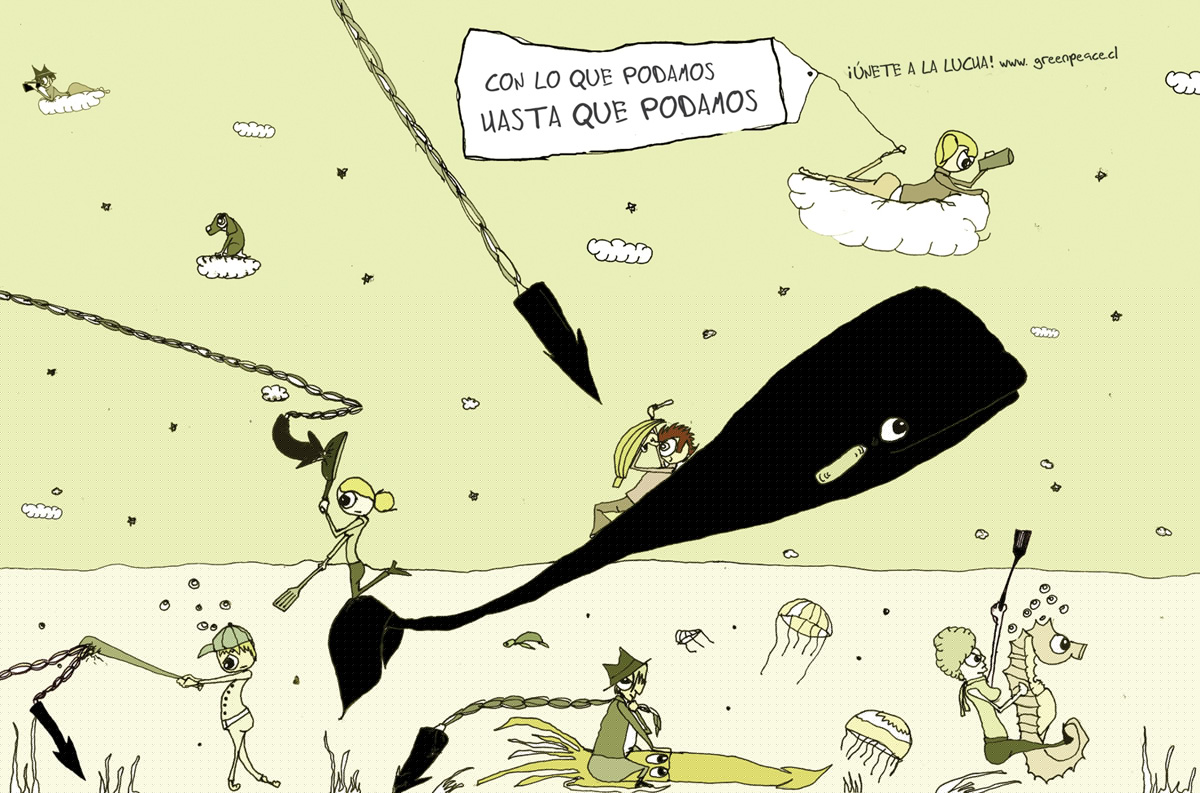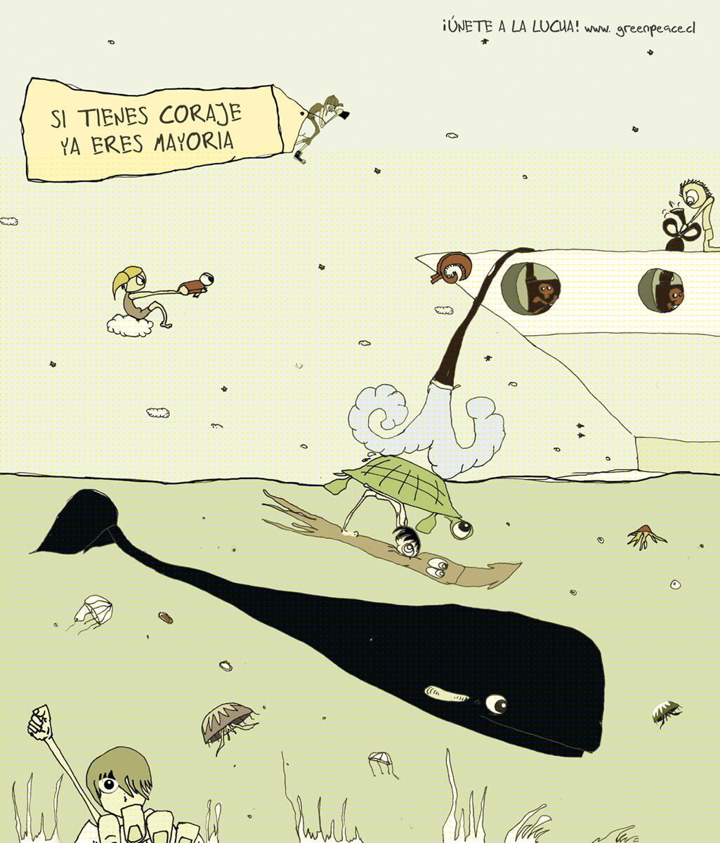 Greenpeace призывает общественность встать на защиту китовПоддерживая такую как организацию как Greenpeace, финансово или участвуя в акциях, вы можете защитить животных. Благодаря Greenpeace ваши пожертвования станут щитом, который защитить китов от гарпуна китобоя.Состав творческой группы Рекламное агентство: Leo Burnett Santiago, Chile Исполнительный продюсер: Hector Orellana Копирайтер: Delfo Banchero Арт директор: Maria Batlle |