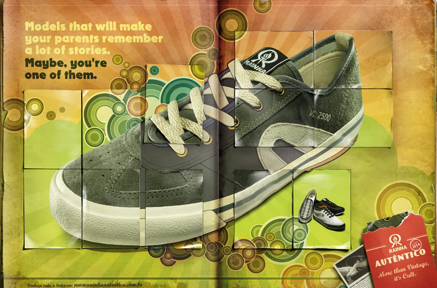 Обувь Rainma пробуждает воспоминанияБразильское рекламное агентство Talent, Sao Paulo, создавая рекламные плакаты для бренда обуви Rainma, решило акцентировать внимание на том, что эта обувь не только очень удобная, но еще и модная. Винтажный стиль придется по вкусу разным потребителям: и тем, кому за 40 и тем, кому 16.Состав творческой группы Рекламное агентство: Talent, Sao Paulo, Brazil Творческий директор: Joso Livi Арт директор: Fabio Rodrigues Копирайтер: Guigo Oliva Иллюстраторr: Jerome Castro (hellofreaks.com) Фотограф: Edu Rodrigues |