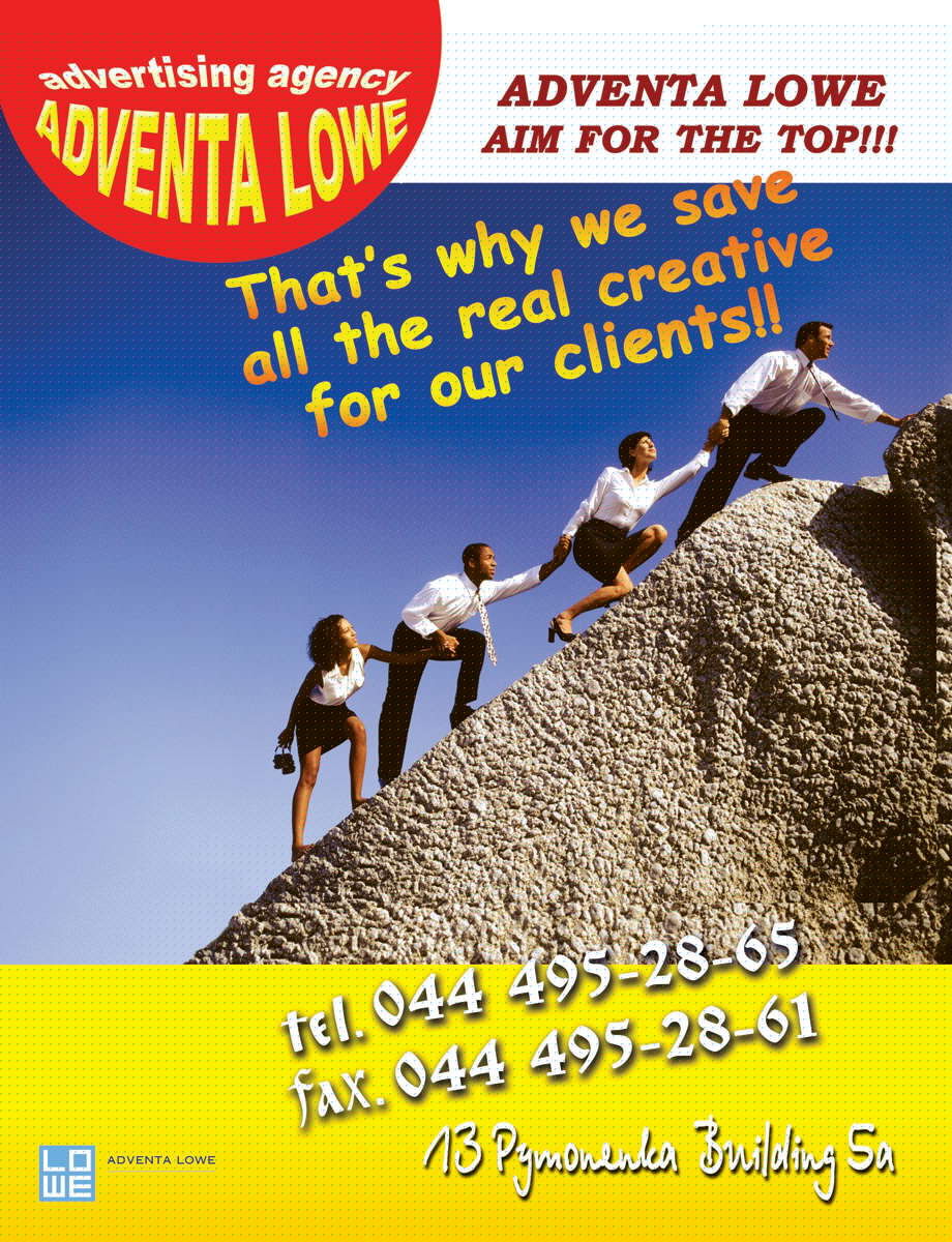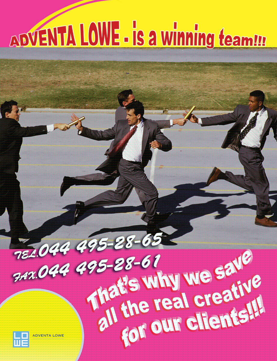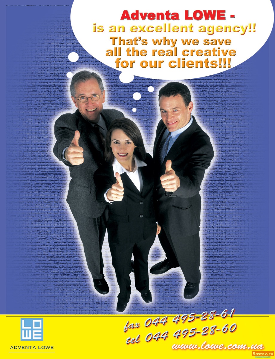 Adventa Lowe постаралось сделать самые отстойные принты для рекламы самой себя. Чтобы показать, что самое лучшее они сберегли для клиентаРекламное агентство Adventa Lowe решило прорекламировать себя, выпустив плакаты, изготовленные при помощи не хитрых подручных средств. Тем самым, донося до потенциальных клиентов, что настоящий креатив агентство Adventa Lowe бережет для клиентов.Состав творческой группы Рекламное агентство: Adventa Lowe, Kiev, Ukraine Творческий директор: Oleksiy Pasichnyk Арт директор: Sergey Levitskiy Копирайтер: Eugene Gozheyshiy |