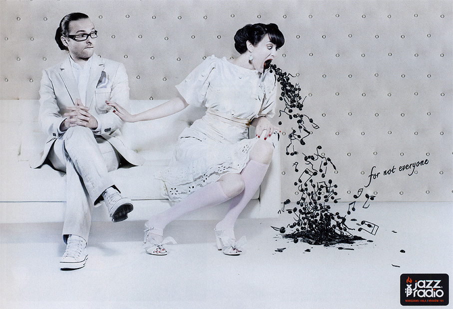От Jazz Radio может стошнитьДжаз - музыка, основанная в основном на импровизации и полиритмии, поэтому нравится она далеко не всем, рассказывает нам агентство McCann Erickson, которое разработало эту рекламную кампанию для польской радиостанции Jazz Radio.Надпись: "Не для всех." Агентство: McCann Erickson, Варшава, Польша Копирайтер / Арт директор: Iza Przepiorska-Kotlinska, Lukasz Kotlinski Фотограф: Lukasz Murgrabia |