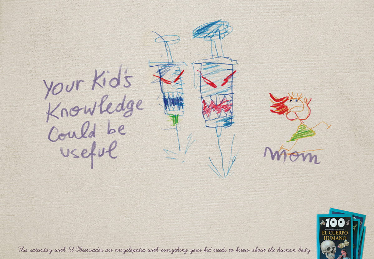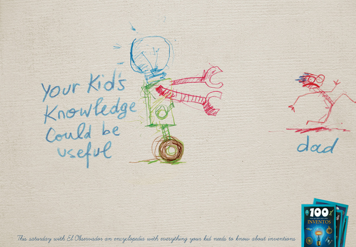 Умные дети читают El ObservadorЭнциклопедия El Observador, содержит максимум знаний о различных вещах, в которых нуждается ваш ребенок. Кто знает, может быть настанет момент, когда эти знания не помешают, что и демонстрирует нам агентство IN рекламными плакатами.Состав творческой группы Рекламное агентство: IN, Montevideo, Uruguay Творческий директор: Claudio Invernizzi Арт директор: Guillermo Larrosa Копирайтеры: Rodrigo Castellanos, Federico Pellejero |
