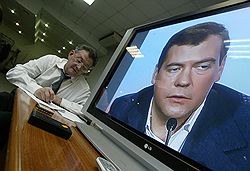 Более того, зрители не то чтобы ушли именно с "Первого канала" на какой-то другой канал. Судя по цифрам рейтингов, они просто ушли от телевизоров вообще. Тем более что и альтернативы-то у них не было: традиционных для воскресного вечера развлекательных программ и художественных фильмов в эфире федеральных телеканалов 2 марта не было. А в прайм-тайме на "России" и на НТВ, разумеется, полным ходом шли рапорты с итогами голосования, и примерно один и тот же состав гостей и политиков кочевал с канала на канал, чтобы поздравить с победой Дмитрия Медведева и подтвердить преданность курсу Владимира Путина. Московские телезрители, судя по рейтингам, на все это реагировала вяло.