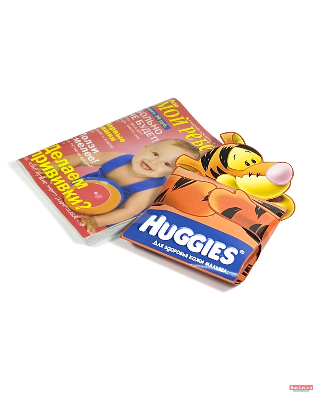 В мартовском номере журнала "Лиза. Мой ребенок" читателей ждет ярко упакованный подгузник Huggies. Упаковка создана творческим агентством "Соус" с использованием образа известного мультяшного персонажа. Это уже не первая работа, сделанная творческим агентством для Kimberly-Clark.