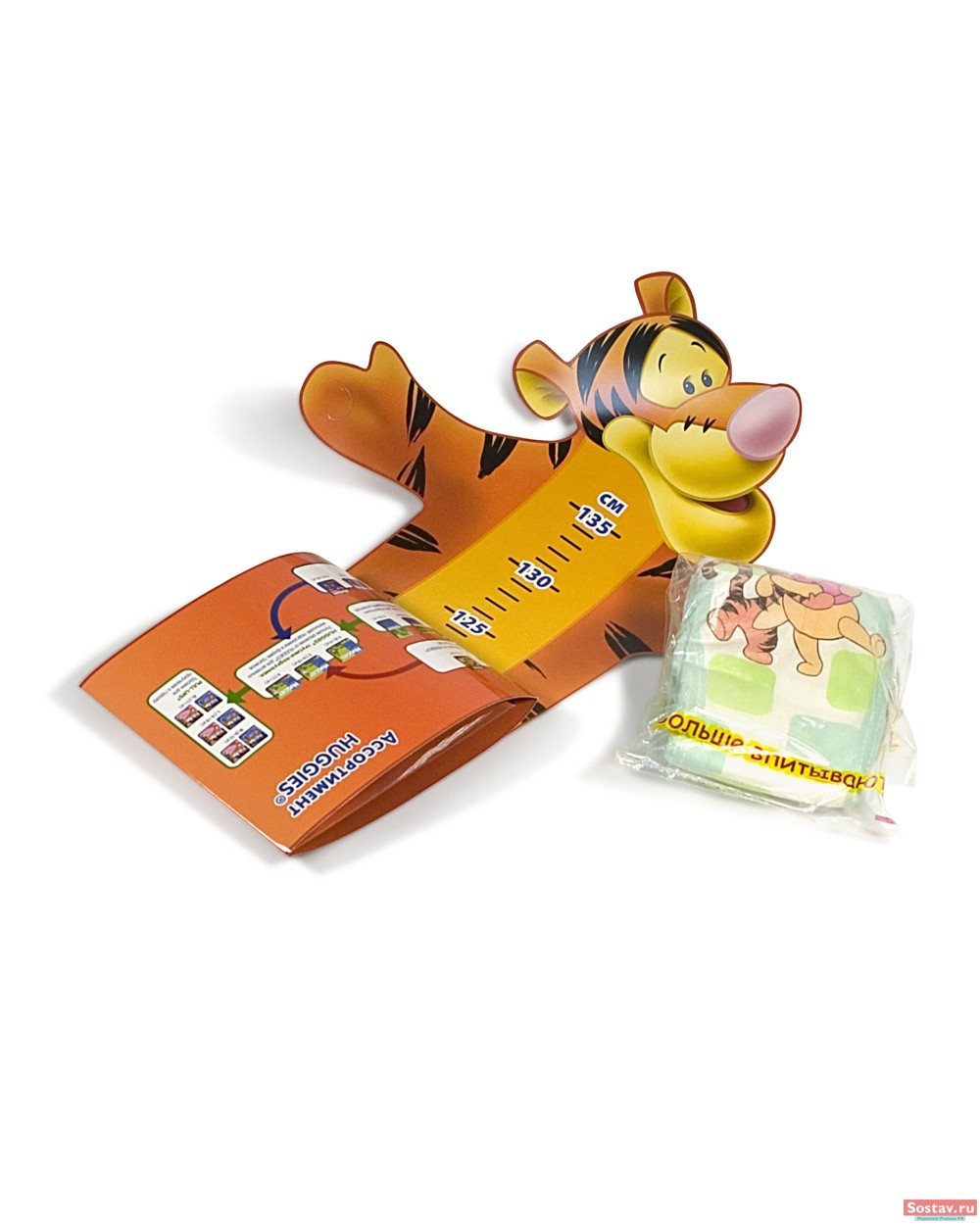 Основная задача, стоявшая перед создателями упаковки для промо - сделать ее максимально технологичной и при этом интересной. Вырубка и яркий рисунок делают упаковку похожей на игрушку, чтобы привлечь внимание и мам, и детей. При разворачивании упаковка превращается в ростомер с силуэтом диснеевского Тигры и может удачно вписаться в интерьер детской.