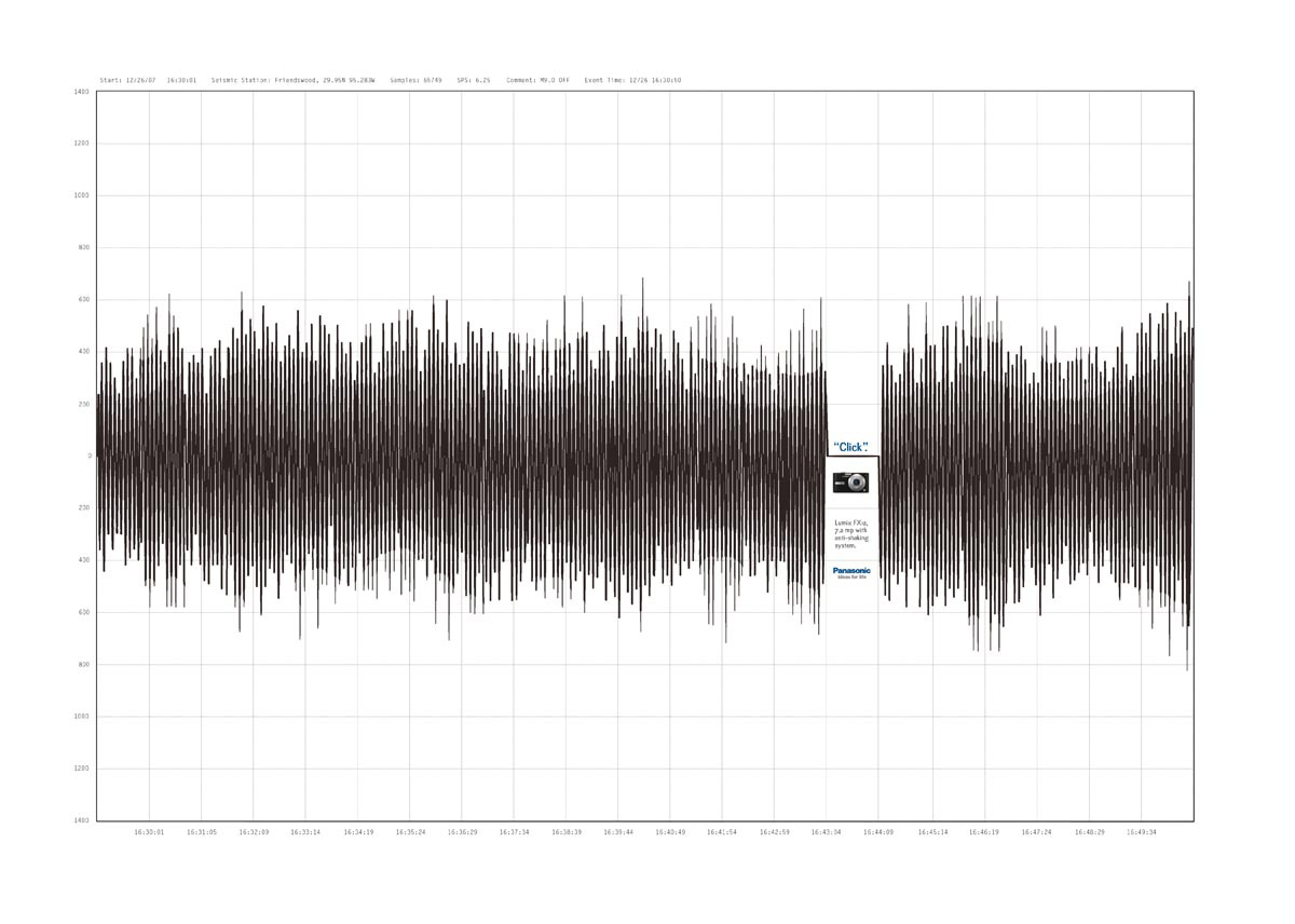 Lumix FX12 7.2: землетрясение нипочемБлагодаря системе подавляющей тряску вы можете не опасаться за свои фотографии. Даже если вы стоите в эпицентре землетрясения, то при нажатии на спуск фотоаппарат Panasonic Lumix FX12 7.2 сделает так, что тряска никак не повлияет их качество.Состав творческой группы Рекламное агентство: Fischer America, Seo Paulo, Brazil Творческие директора: Flavio Casarotti, Pedro Capeletti Арт директор: Silvio Medeiros Копирайтер: Thiago Carvalho |