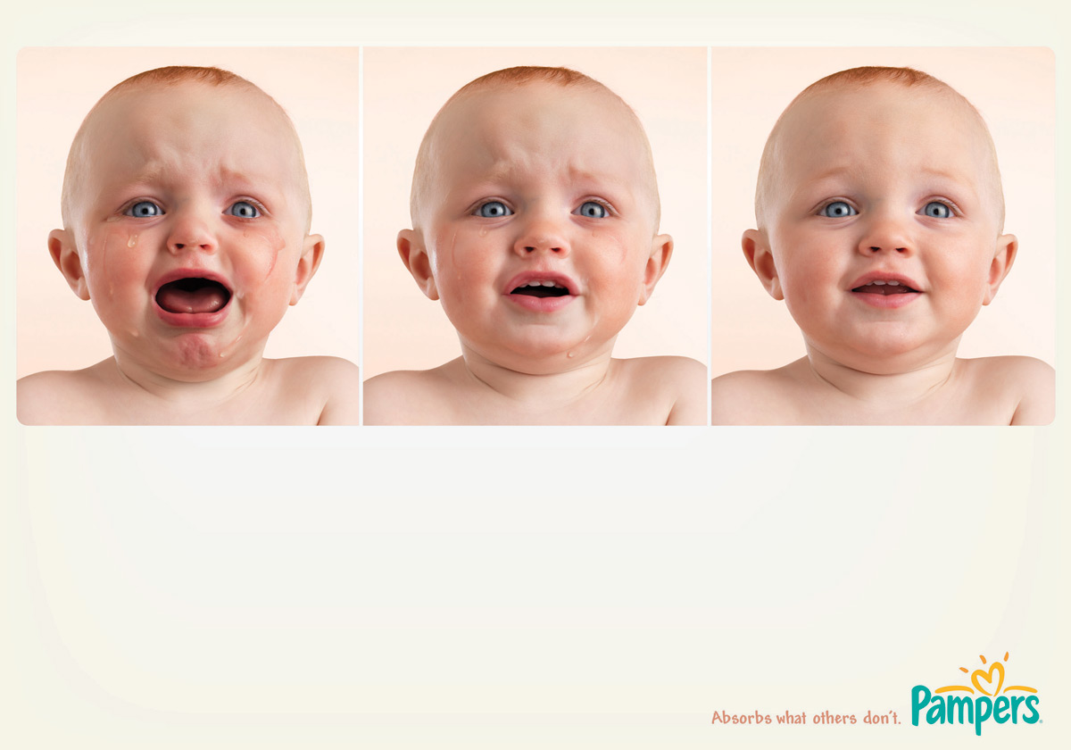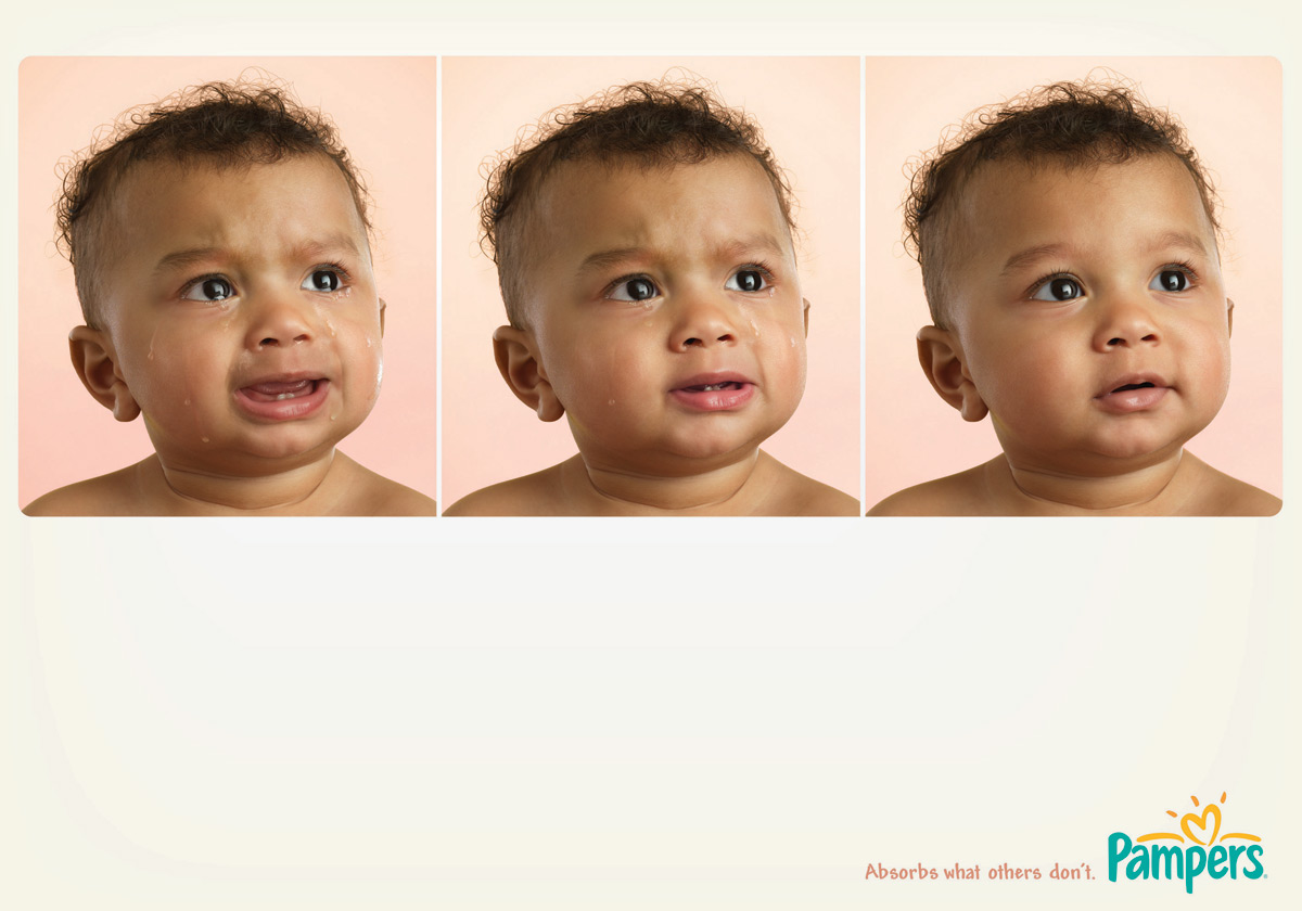 Pampers избавит вашего малыша от слез"Абсорбирует то, чего другие не могут", - для подтверждения данного слогана рекламное агентство Del Campo Nazca Saatchi & Saatchi изобразило на принтах ребенка. Постепенная метаморфоза от плачущего малыша к смеющемуся говорит нам о том, что Pampers не только впитывает "детские неожиданности", но и избавляет ребенка от дискомфорта. Тем самым, улучшая его настроение и настроение родителей.Состав творческой группы Рекламное агентство: Del Campo Nazca Saatchi & Saatchi, Buenos Aires, Argentina |