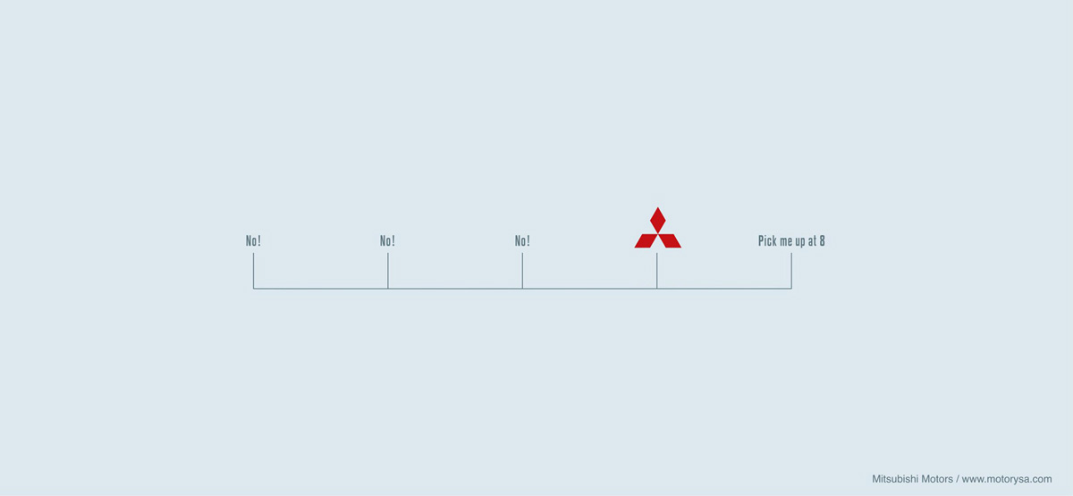 При виде Mitsubishi женщина не может сказать нетРабота была сделана колумбийским агентством ToroVazquezMora. Помимо технических показателей, стильного дизайна, трансмиссии и дополнительных опций у автомобилей марки Mitsubishi есть еще одна интересная особенность - понравившаяся вам дама не сможет отказать, если вы за рулем этого авто.Состав творческой группы Рекламное агентство: ToroVazquezMora / Fischer America, Colombia Творческие директора: Carlos lozano, Sergio Becerra, Jaime Cueto Арт директор: Sercio Becerra Копирайтеры: Sebastian Gonzalez, Nicolas Caceres |