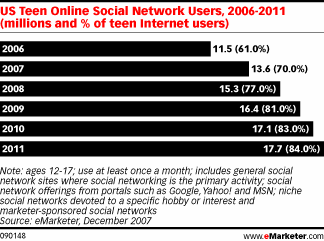 Согласно данным eMarketer, интерес к таким сервисам будет расти у американских подростков по меньшей мере до 2011 года, когда мобильным доступом к Facebook или MySpace будут пользоваться более 80% подростков в США.
