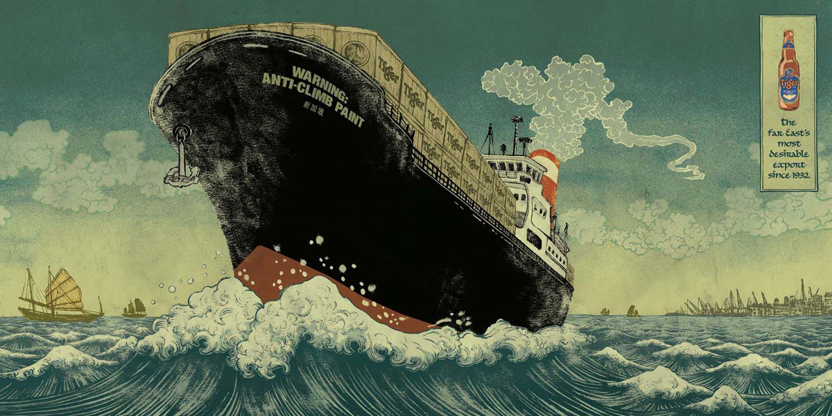 Не ничего ценнее на востоке, чем TigerКак утверждает агентство CHI&Partners, на востоке нет ничего ценнее и притягательней чем Tiger. На место специям и шелками, издавна импортируемым с востока, пришло пиво Tiger.Надписи: "Груз надежно закрыт. У команды нет доступа к ключам" "Внимание, окрашено краской, которая предотвращает возможность влезть на борт" Состав творческой группы Рекламное агентство: CHI&Partners, London, UK Исполнительный творческий директор: Ewan Paterson Творческий директор: Ed Edwards, Dave Masterman Иллюстраторr: Yuko Shimuzu Креатив: Matt Collier, Wayne Robinson |