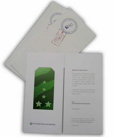 Поздравления клиентов от Русского Банка Развития: "Дослужись до генерала" и предчувствие весныРусский Банк Развития 23 февраля предоставил своим клиентам возможность дослужиться до генерала, пройдя 3 этапа виртуальной анимационной игры, - в таком формате была подготовлена поздравительная флэш-открытка Банка. В первом задании необходимо было предотвратить наступление вражеского партизанского отряда, во втором - вычислить в лесном массиве шпионов, а в заключительном - выстоять в массированной атаке противника на земле, на воде и в воздухе.Дамам, наряду с другими подарками, Русский Банк Развития тоже подготовил флэш-открытку: распускающийся на экране цветок стал символом пробуждения природы от зимнего сна, а нежный теплый фон открытки подчеркнул весеннее настроение. Дослужиться до генерала и ощутить приближение весны можно на страничке Состав творческой группы: Команда Русского Банка Развития: Наталия Ковшель - куратор проекта Сергей Высоцкий - менеджер проекта Визуализация идеи - РА "New Channel": Мария Путова - эккаунт-директор ![]() ![]() |