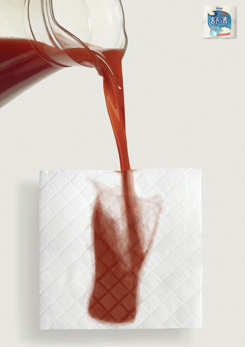 Свиньям в радость. Салфетки Kleenex впитывают идеальноКитайское JWT создало плакаты, рекламирующие салфетки для кухни фирмы Kleenex. Не важно, какую жидкость вы разлили. У вас есть Kleenex, которые с легкостью устранят вашу оплошность.Агентство: JWT, Beijing, China Творческий директор: Jordan Xue Художник: Dechun Qiu Копирайтер: Su Wang |