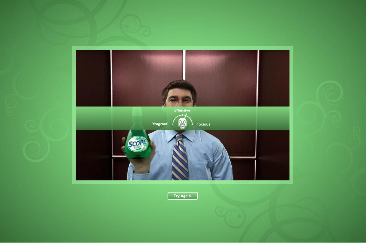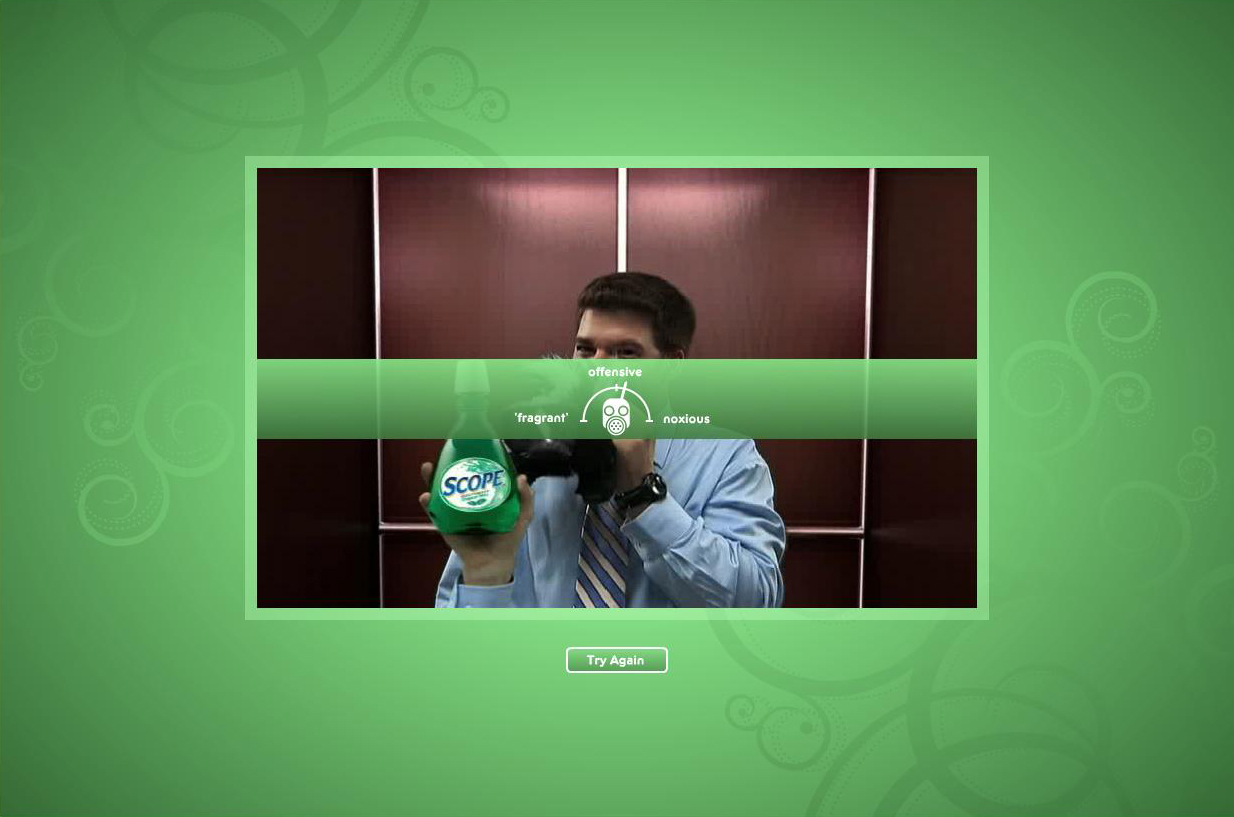 Scope протестирует ваше дыхание. Результаты вам не понравятсяРекламное агентство Dentsu изготовило простой и в тоже время брутальный сайт для Scope, на котором ваше дыхание подвергнется тщательной проверке.Пользователю предлагается ввести те продукты, которые он кушал, и понаблюдать за реакцией главного героя. Участь его не завидная, ему предстоит снимать свой нос, нюхать скунса, подвергаться различным повреждениям собственной головы. И все для того, чтобы доказать необходимость и важность использования жидкости для полоскания полости рта Scope. Клиент: Scope Агентство: Dentsu Canada Копирайтер: Glen Hunt Художник: Michael Gramlow Дизайнер: Thomas Hong Режиссер: David Hicks Пост продакшн: Crush Аниматор: Aylwin Fernando, |