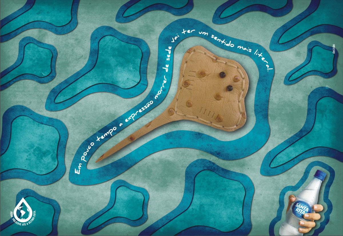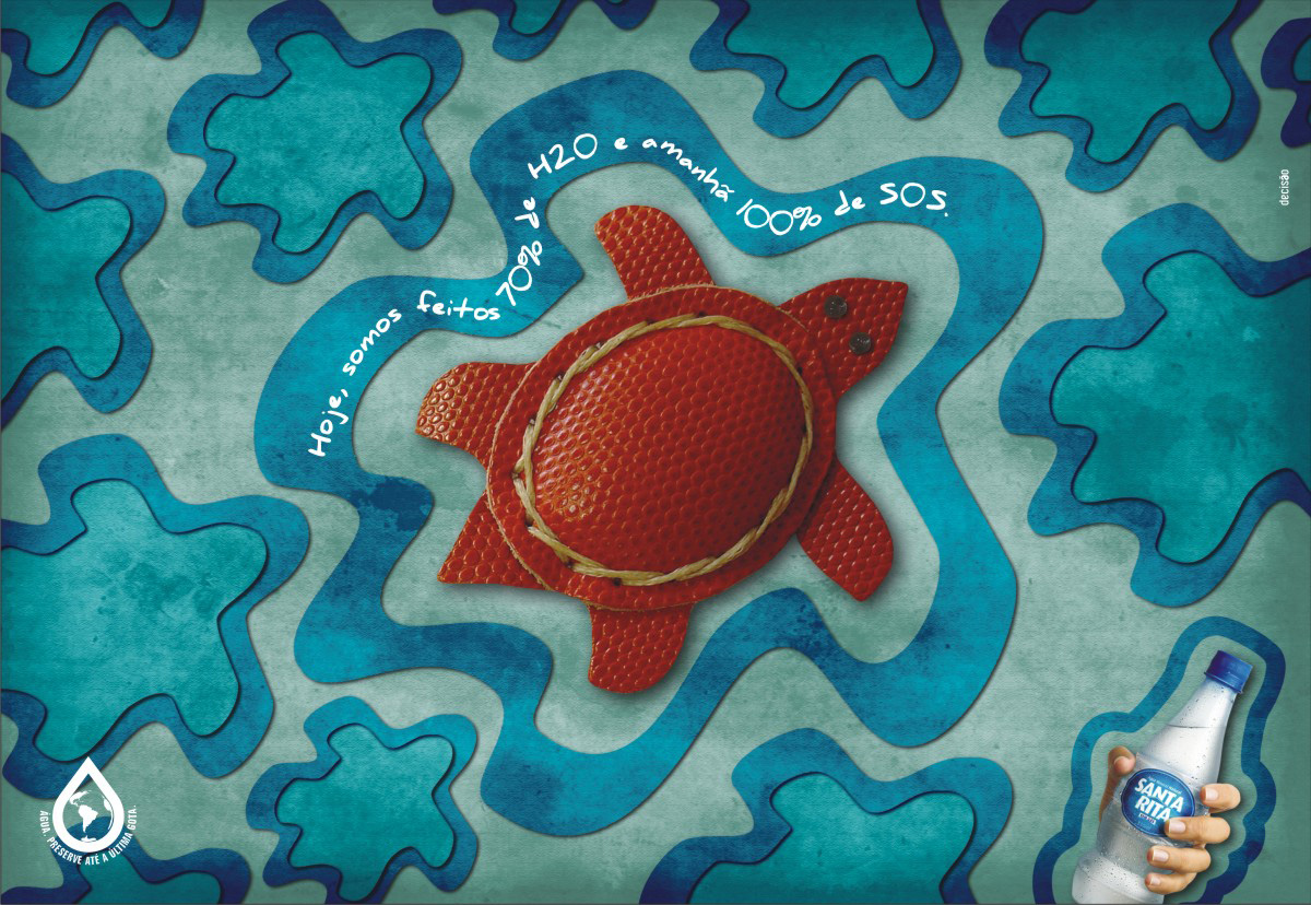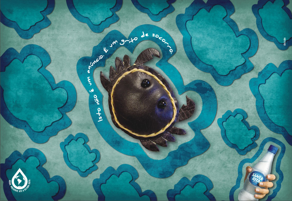 Рукотворные черепашки и крабы рекламируют воду Santa RitaБразильское агентство Decisão Comunicação считает, что если не беречь природные ресурсы, а именно – воду, очень скоро выражение ”умереть от жажды” будет не просто литературным выражением. А увидеть морских животных в естественной среде обитания станет просто невозможно. Надпись: “Вода. Сохраняйте до последней капли” Агентство: Decisão Comunicação, Florianópolis, Brazil Креативный директор/Копирайтер: Alexandre Guedes Художник / Фотограф / Иллюстратор: Marcus Vinicius |