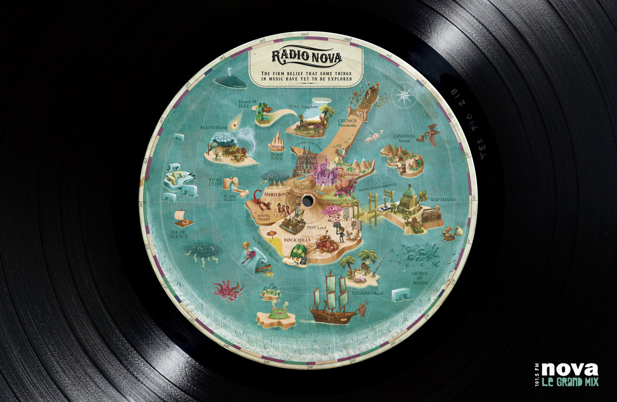 NOVA FM - все стили музыки на принтахКак рассказывают агентства Young & Rubicam Paris и Boulogne Billancourt, французская радиостанция NOVA FM ставит в эфир очень разнообразную музыку, а если вы не разбираетесь в стилях, то эта рекламная кампания создана специально для вас. Каждый из девяти плакатов серии посвящен одному из музыкальных стилей, о чем свидетельствуют не только надписи на виниловых пластинках, но и картинки на них.