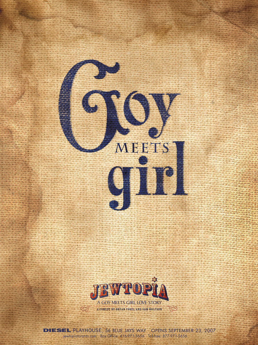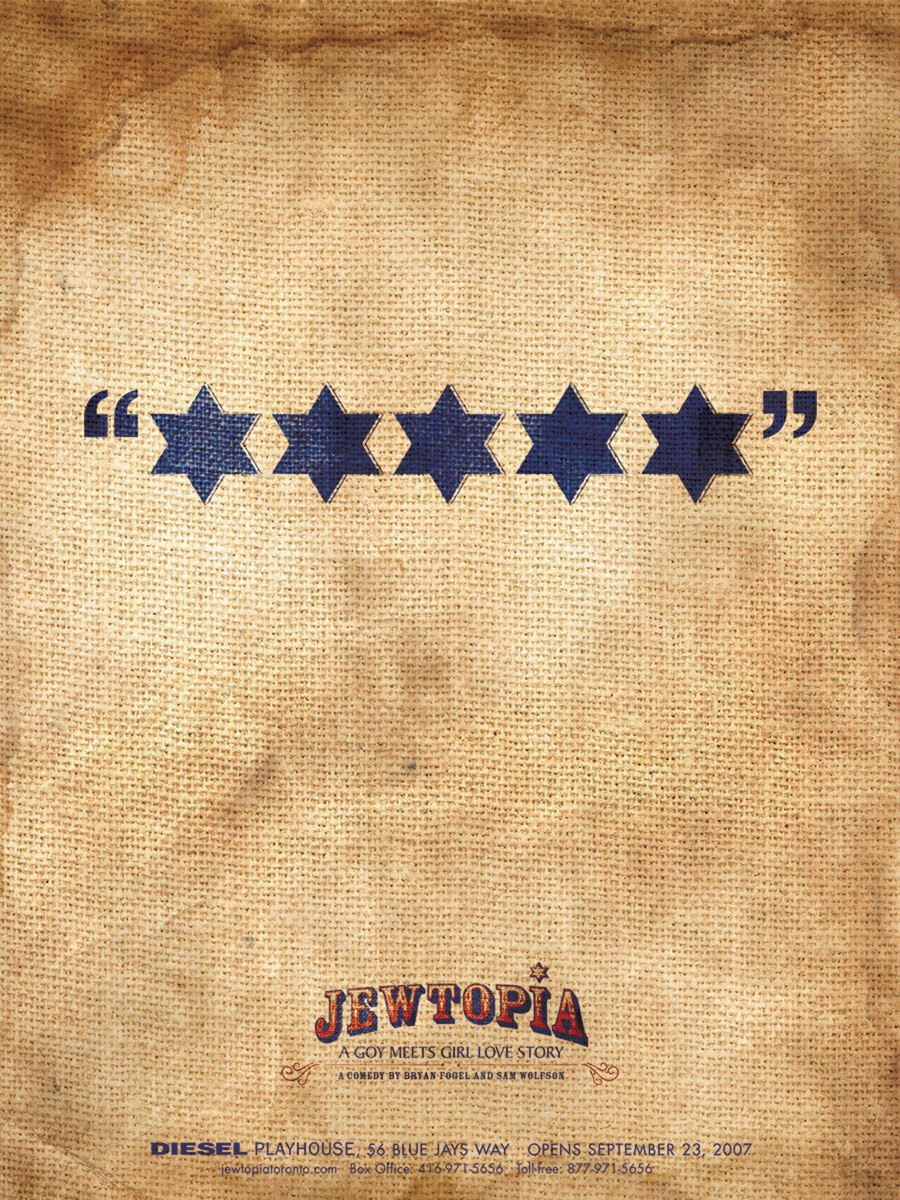 "Jewtopia": иудейский юморПьеса "Jewtopia" ("Еврейская утопия"), написанная Брайном Фогелем и Сэмом Уолфсоном, рассказывает о двух 30-летних холостяках Крисе и Адаме. По сюжету, Крис, американец, хочет жениться на еврейской девушке по собственной прихоти. Адам - иудей, который хочет жениться на еврейке, чтобы удовлетворить волю своих родителей, но не может добиться ни одного свидания. Два холостяка заключают секретный договор: Крис обещает Адаму найти девушку его мечты, но только в том случае, если тот поможет ему стать "настоящим иудеем" и своим человеком в обществе семитов.Чтобы представить эту пьесу в Канаде, агентством Sharpe Blackmore были разработаны рекламные принты, особенностью которых стала легко узнаваемая иудейская символика, представленная в юмористическом стиле. Агентство: Sharpe Blackmore, Торонто, Канада Творческий директор: Ron Tite Арт директор: JP Gravina Копирайтер: Brent Turnbull, Peter Sellers Иллюстратор: Richard Thompson Исполнительный аккаунт-менеджер: Josh Rosen |