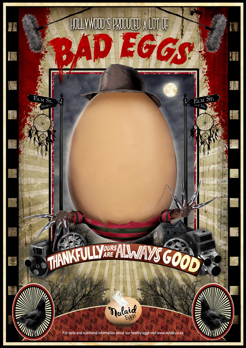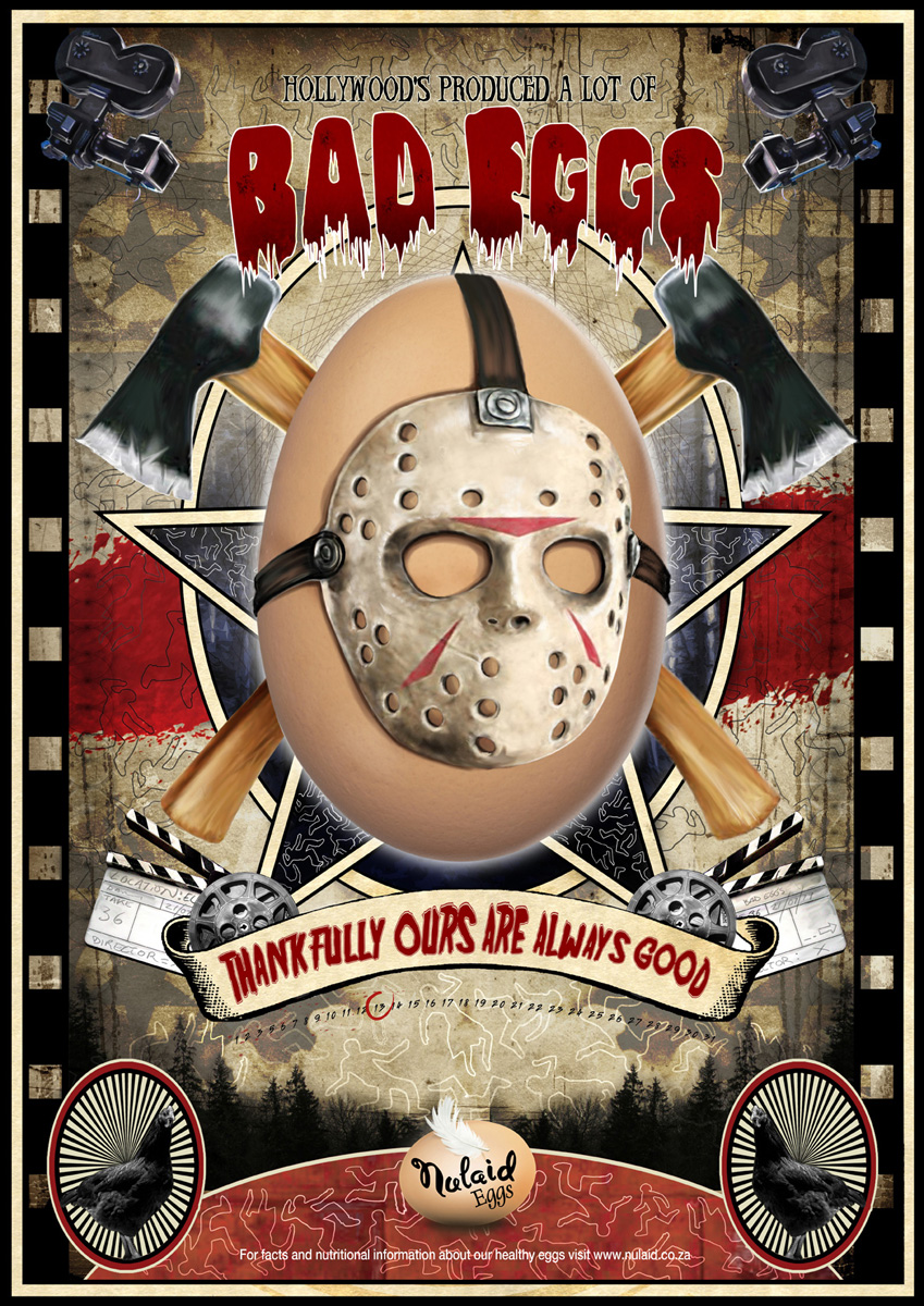 Pioneer Foods - те же яйца, только из фильмов ужасовЮжноафриканское рекламное агетство The Jupiter Drawing Room представило нам куриные яйца плохого качества в виде персонажей всемирно известных фильмов ужасов. Голливудские яйца трансформировались на этих принтах в Ганнибала Лектера, Фредди Крюгера и Джейсона Вурхиза. В отличии от этих "кошмарных" яиц, продукция компании Pioneer Foods, а именно яйца Nulaid, всегда хороша.Надпись: "Голливуд выпускает много плохих яиц. К счастью, наши всегда хороши." Агентство: The Jupiter Drawing Room, Йоханнесбург, Южно-Африканская Республика Главный творческий директор: Graham Warsop Творческий директор: Thomas Cullinan Арт директор: Shane Forbes Копирайтер: Aviv Weil Иллюстратор: Ben Chroseman, Jac Sun |