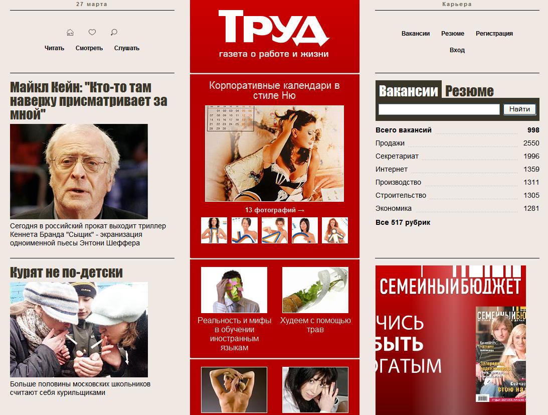 ПоТРУДились на славу. Дизайнер Владимир Липка завершил ребрендинг "Труда" обновленным сайтомРебрендинг, длинною в 87 лет почти завершен. После обновления стиля и концепции газеты "Труд", в начале марта стартовала масштабная рекламная кампания от агентства Great. Как обычно, венчает ребрендинг смена стиля сайта. Для "Труда" обновленный вид ресурса разработал дизайнер Владимир Липка совместно с командой издательского дома. Предполагается, что именно в Интернет-пространстве читатели полностью ощутят кардинальные перемены издания.Но на этом творческий потенциал "трудовцев" не кончается. Как рассказала Sostav.ru начальник отдела PR и Продвижения "Труда" Яна Маргасова: "В апреле мы собираемся провести ребрендинг нашего издания "Труд7", а также вторую волну рекламной кампании "Труда". Напомним читателям, что пока издательский дом продвигает свои продукты через наружную рекламу и средства indoor. Эксперты, опрошенные Sostav.ru, отмечали, что изданию, рассчитанному на молодежную аудиторию, правильнее было бы сконцентрировать рекламные возможности в профильных изданиях и интернете, а также используя btl-инструменты. Новый сайт "Труда" воплощает представления команды издания о современном портале: новости и аналитические материалы делят площадь сайта с информацией о трудоустройстве. "Главной "фишкой" trud.ru является рубрика, посвященная поиску работы", - заявляют создатели. Тем не менее, корреспонденту Sostav.ru не удалось воспользоваться этим сервисом. По словам Яны Маргасовой, раздел пока работает в тестовом режиме. Портал trud.ru всегда был одним из самых посещаемых в интернете среди газетных СМИ. По данным сервиса mail.ru, вчера на 18.00 "Труд" занимал третью строчку с количеством посетителей чуть более 100 тысяч человек. Издание уступило лишь "Комсомольской правде" и газете "Твой день". Дмитрий Захаркин, Sostav.ru |