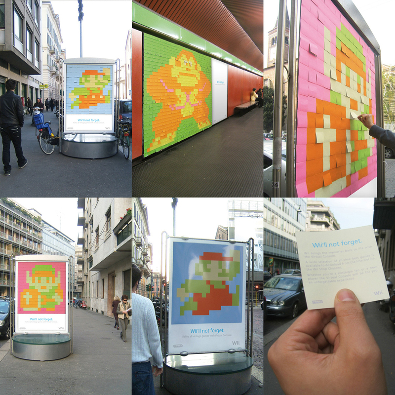 Nintendo Wii призывает вспомнить старое-доброеВ качестве средства для проведения рекламной кампании игровой консоли Wii, агентство Leo Burnett выбрало самоклеющиеся бумажки, которые обычно используются как напоминание о важных событиях. Mario и Donkey Kong - персонажи игр, которые в свое время увлекали миллионы людей, не будут забыты, потому что есть Wii.Надпись на обратной стороне бумажки: "Мы не забудем" Агентство: Leo Burnett Milan Клиент: Nintendo Wii Virtual Console Исполнительный творческий директор: Sergio Rodriguez, Enrico Dorizza Художник: Francesco Epifani Копирайтер: Davide Rossi |