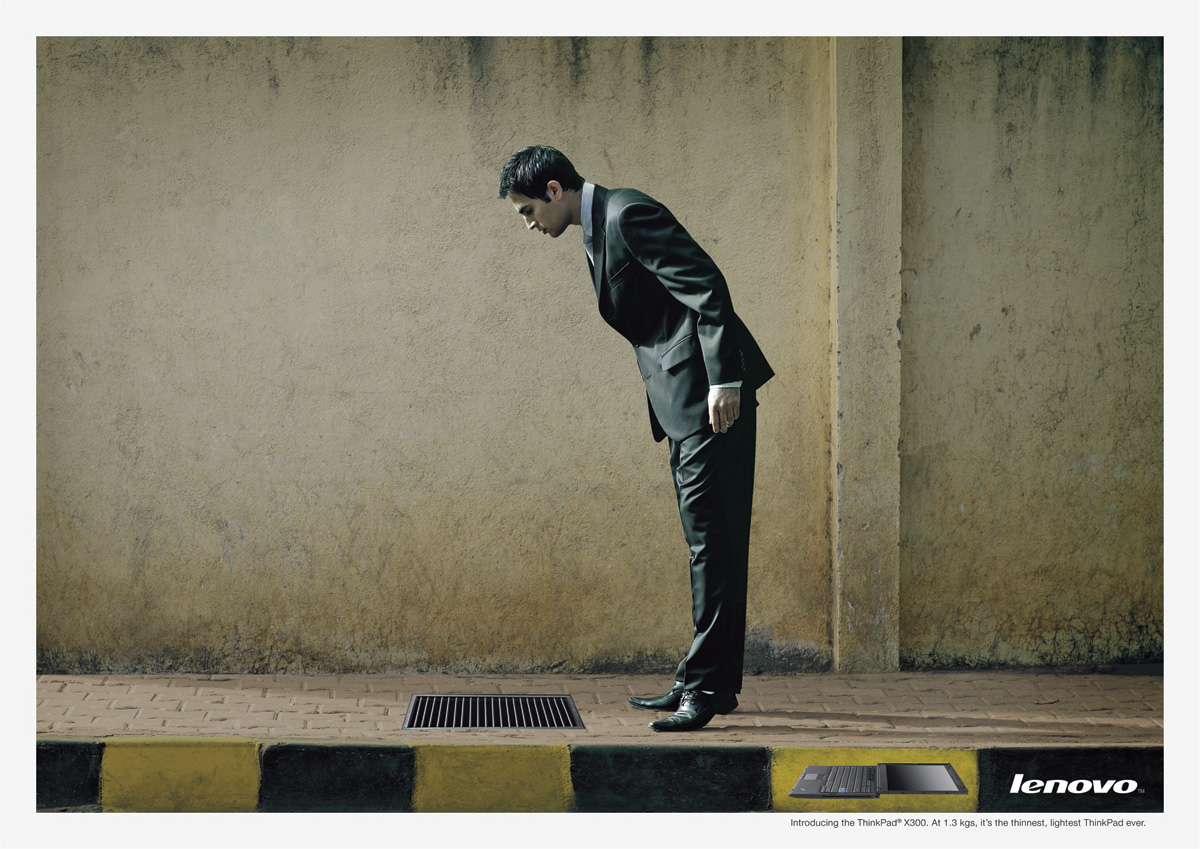 ThinkPad X300: самый легкий и тонкий ноутбук среди ThinkPadРекламная кампания ноутбука ThinkPad X300 от индийского агентства Ogilvy показывает нам молодого человека, который склонился над решеткой сливной канализации. Таким способом до ЦА доносится информация об уникальных габаритных характеристиках ноутбука. При весе всего в 1.3 килограмма X300 настолько тонкий, что может с легкостью пролететь между прутьев решетки.Агентство: Ogilvy, Bangalore, India Креативный директор: Rod Vallis Арт директора: V.Jeyananth, KT. Arun Копирайтер: Melvin Jacob John Иллюстратор: Salim Фотограф: Senthil |