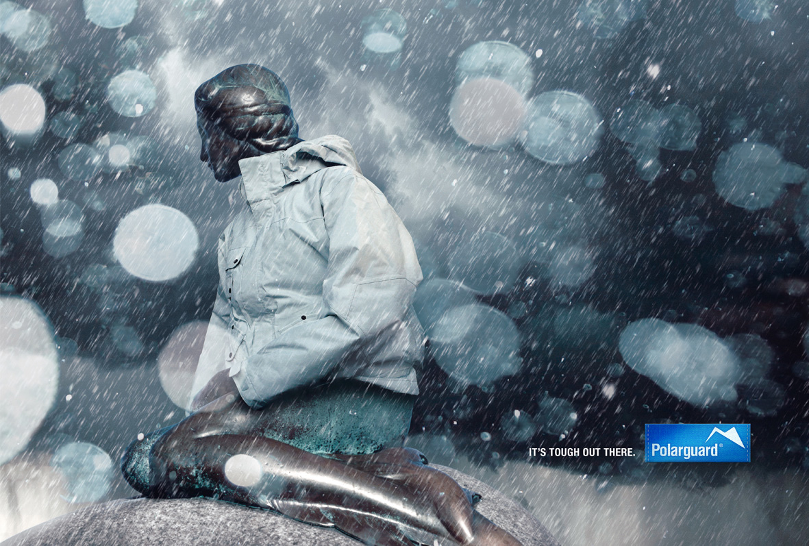 Утеплитель Polarguard - согреет даже каменьЧтобы прорекламировать один из лучших утеплителей Polarguard от компании The Lessinger Group, Inc., немецкое агентство KNSK, разрабатывая эту кампанию, одело в зимнюю одежду такие скульптуры, как, например, памятник Русалочке в Копенгагене.Надпись: "Потому что снаружи очень люто." Агентство: KNSK, Гамбург, Германия Творческий директор: Tim Krink Арт директор: Thomas Thiele |
