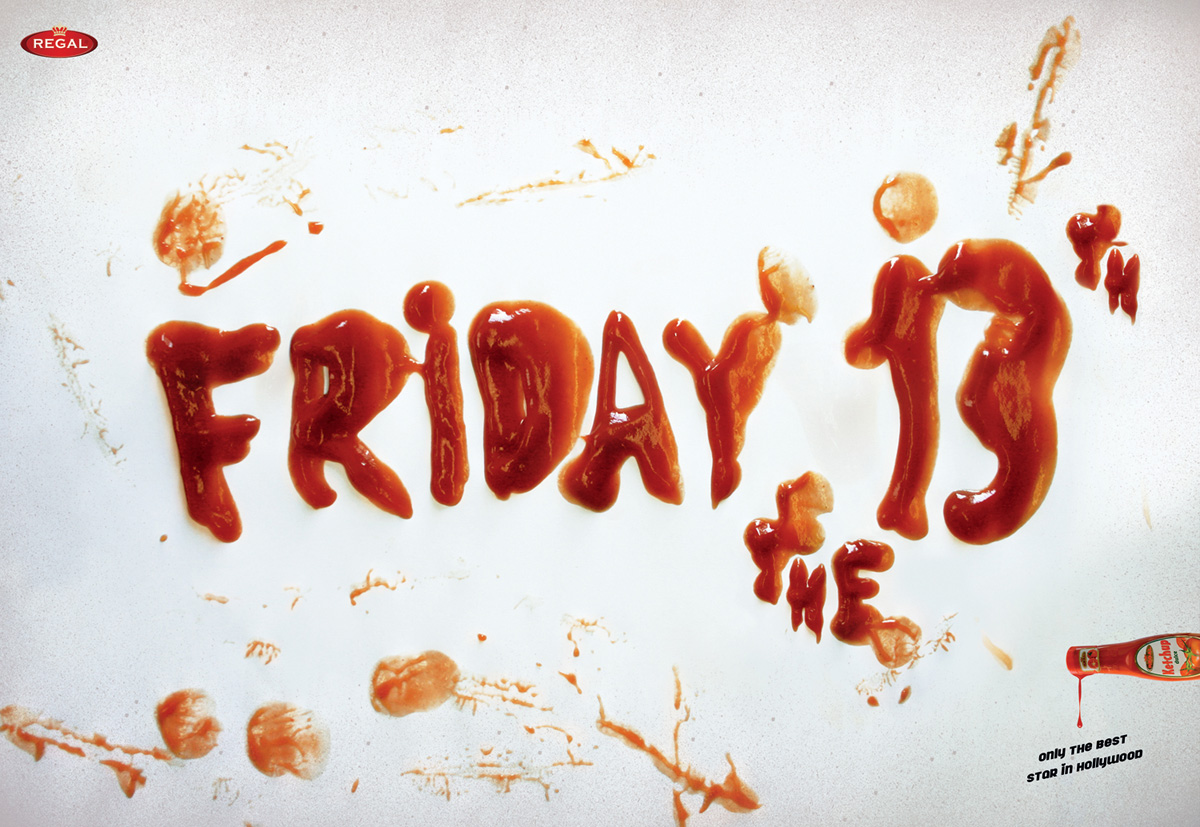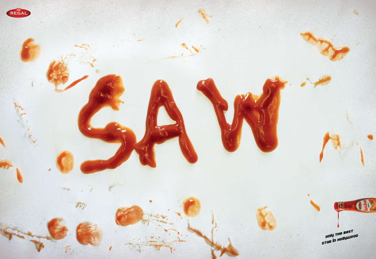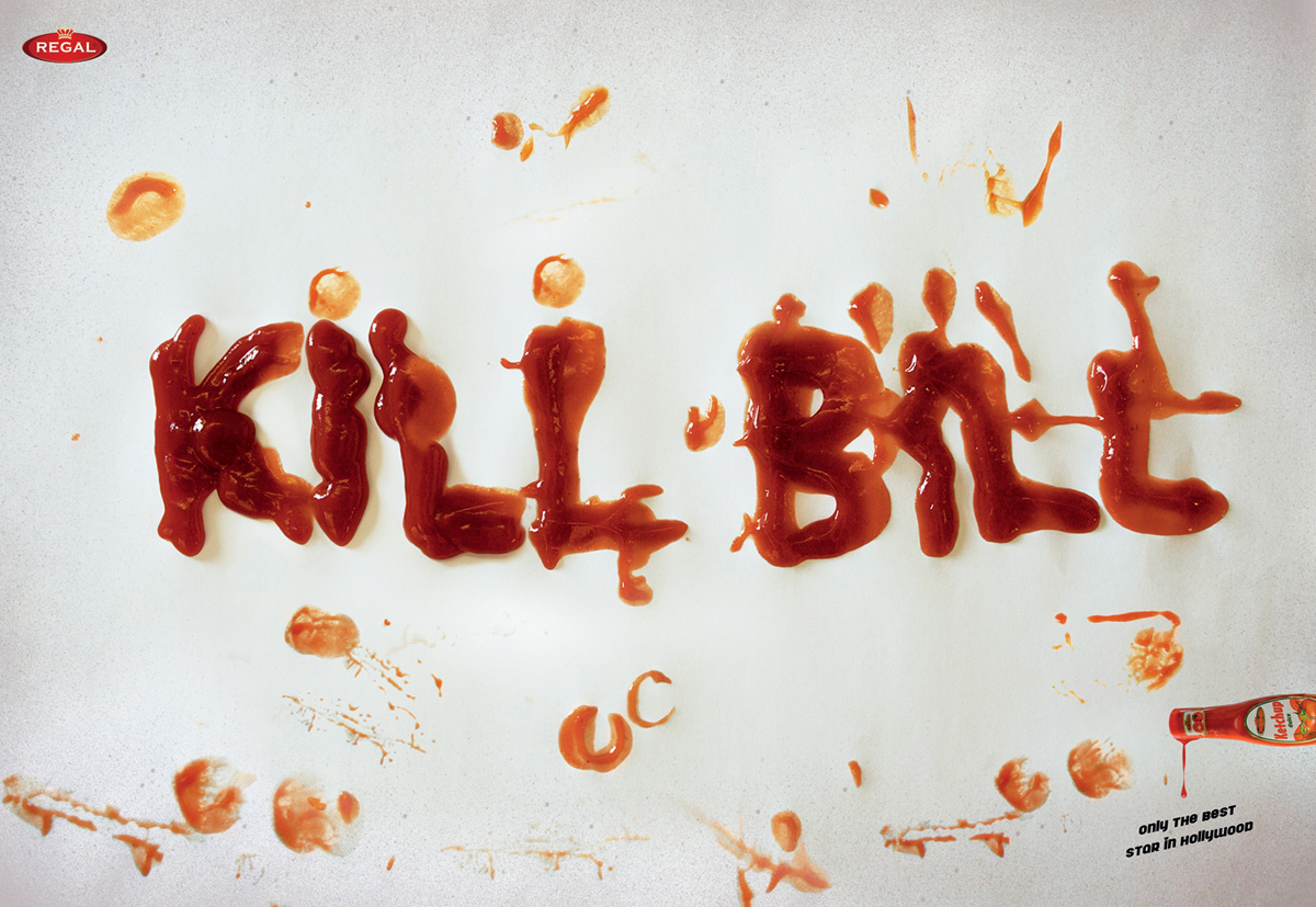 Кетчуп Regal - известная звезда в ГолливудеРумынское агентство Tempo Advertising утверждает, что на легендарных голливудских киностудиях снимаются только настоящие звезды. Одной из которых является и кетчуп Regal, "исполнивший роль" крови в таких нашумевших фильмах, как "Убить Билла", "Пятница, 13-е" и "Пила".Надпись: "В Голливуде только лучшие звезды." Агентство: Tempo Advertising, Бухарест, Румыния Творческая группа: Pedro Pahl, Fabiano Marques, Sanda Veber |