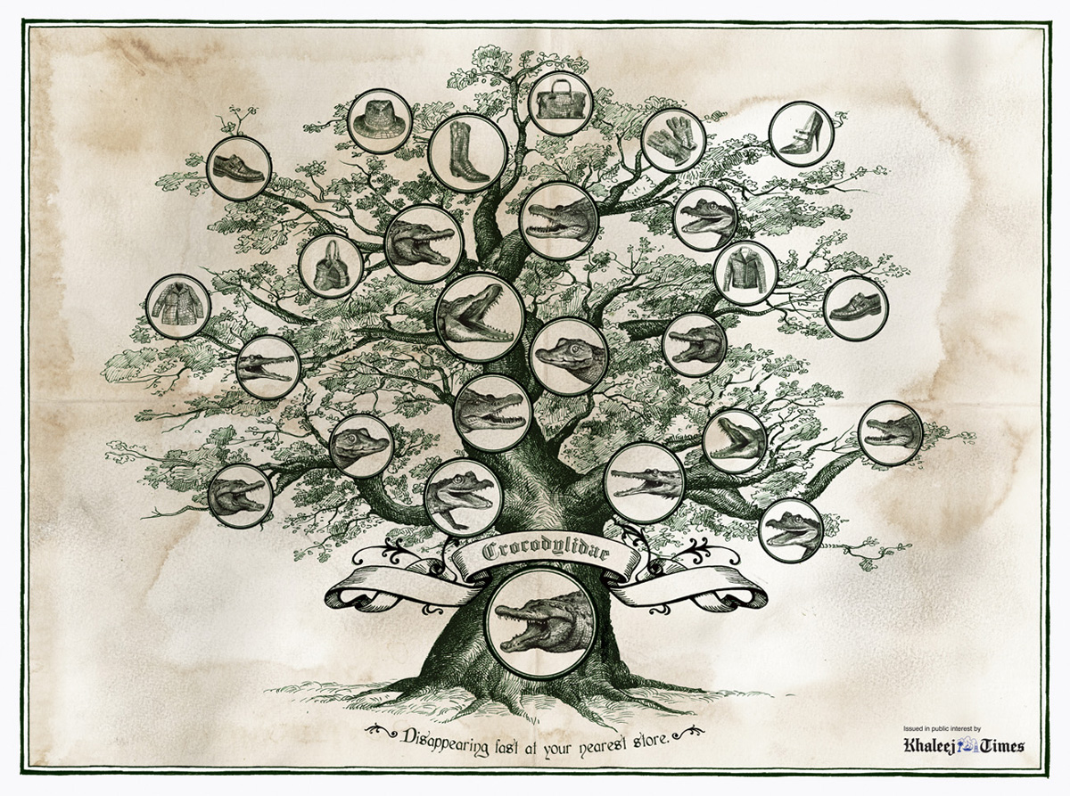 Khaleej Times: покупай быстрее, пока еще не слишком поздноРекламное агентство Team Y&R считает, что издание Khaleej Times моментально исчезает с прилавков магазинов, и для того чтобы успеть приобрести свой номер, потребителю надо изрядно поторопиться. Для иллюстрации этого Team Y&R изобразило генеалогическое древо крокодилов, которые в последствии превращаются в чемоданы и предметы гардероба.Агентство: Team Y&R, Dubai, UAE Креативный директор: Shahir Ahmed Арт директор: Daniel Botezatu Копирайтер: Mohit Raviranjan Иллюстратор: Baiju N, M Baburajan |