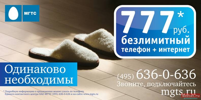 МГТС вводит новый пакетный тариф 777 для доступа в ИнтернетМосковская городская телефонная сеть (МГТС), входящая в группу компаний "КОМСТАР - Объединенные ТелеСистемы", ввела в действие пакетный тариф "МГТС. Телефон + Интернет 2". Тарифный план предусматривает безлимитный доступ в Интернет на скорости 2 Мбит/с и безлимитную местную телефонную связь за 777 рублей в месяц. Вывод на рынок нового тарифного плана сопровождается масштабной рекламной кампанией под слоганом "Безлимитно.Просто.Вместе".Рекламные кампания направлена на аудиторию 30+. Дизайн коммуникации разработан московским агентством "Димарк". Основные рекламные носители: наружная реклама за пределами третьего транспортного кольца, рекламные ролики на радиостанциях "Авторадио", "Шансон", "Юмор FM", "Европа плюс" и ряде других, а также рекламные модули в печатных изданиях семейной направленности. К рекламным носителям добавится реклама на транспорте. Размещением занимается коммуникационная группа MAХIMA. Новый тарифный план дополнит линейку тарифов "Интернет от МГТС". В рамках этого проекта компания МГТС с сентября 2007 года предоставляет своим абонентам широкополосный доступ в Интернет под собственным брендом. "При разработке нового тарифного плана мы учли первый опыт предоставления услуги "Интернет от МГТС", что позволило сделать нашу тарифную линейку более универсальной. Мы планируем привлечь новых пользователей - тех, кто хотел бы иметь комфортный высокоскоростной Интернет с дополнительным удобством в виде кредитной системы оплаты", - заявил генеральный директор ОАО МГТС Николай Максименка. Одна из важнейших особенностей МГТС состоит в кредитной форме оплаты широкополосного доступа, когда абонент оплачивает услуги не на месяц вперед, а по факту их оказания. Оплата Интернета от МГТС включается в единый счет вместе с оплатой домашнего телефона, автоматического определителя номера и других услуг оператора. |