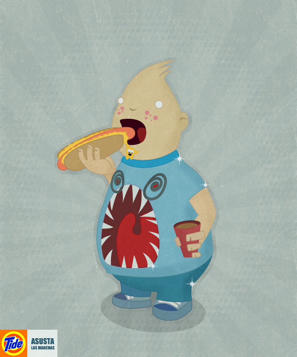 Порошок Tide запугал бедные пятнаАргентинское агентство LV, создавая рекламную кампанию для стирального порошка Tide, решило сделать упор не на то, как восхитительно он выводит пятна, а на то, что пятна просто боятся появляться на одежде, выстиранной этим порошком, ведь Tide для них смертельно опасен.Надпись: "Он пугает пятна." Агентство: LV, Буэнос-Айрес, Аргентина Творческий директор: David Garzon Арт директор: Andres Benavides |