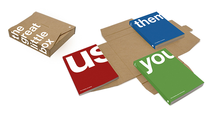 Дизайнер Райан Ромеро (Ryan Romero) — замечательный человек, в том плане, что его дизайн нельзя назвать ни уродливым, ни прекрасным. Он вообще держится максимально удалённо от любых возможных качественных определений. К примеру, для компании Great Little Box, работающей с упаковкой, Райан недавно создал три вот таких книги: «Ты», «Мы» и «Они».
