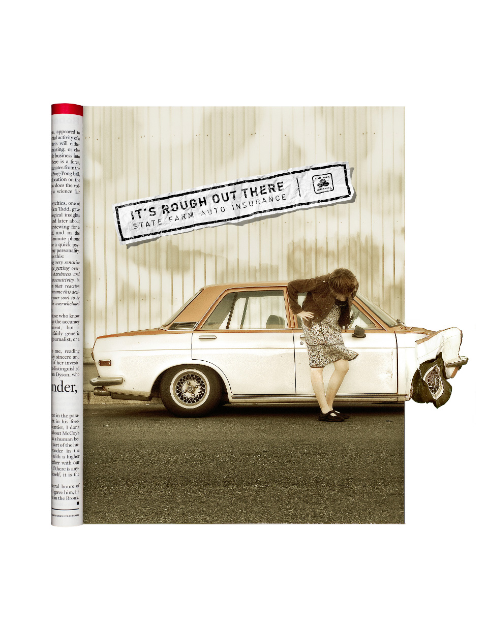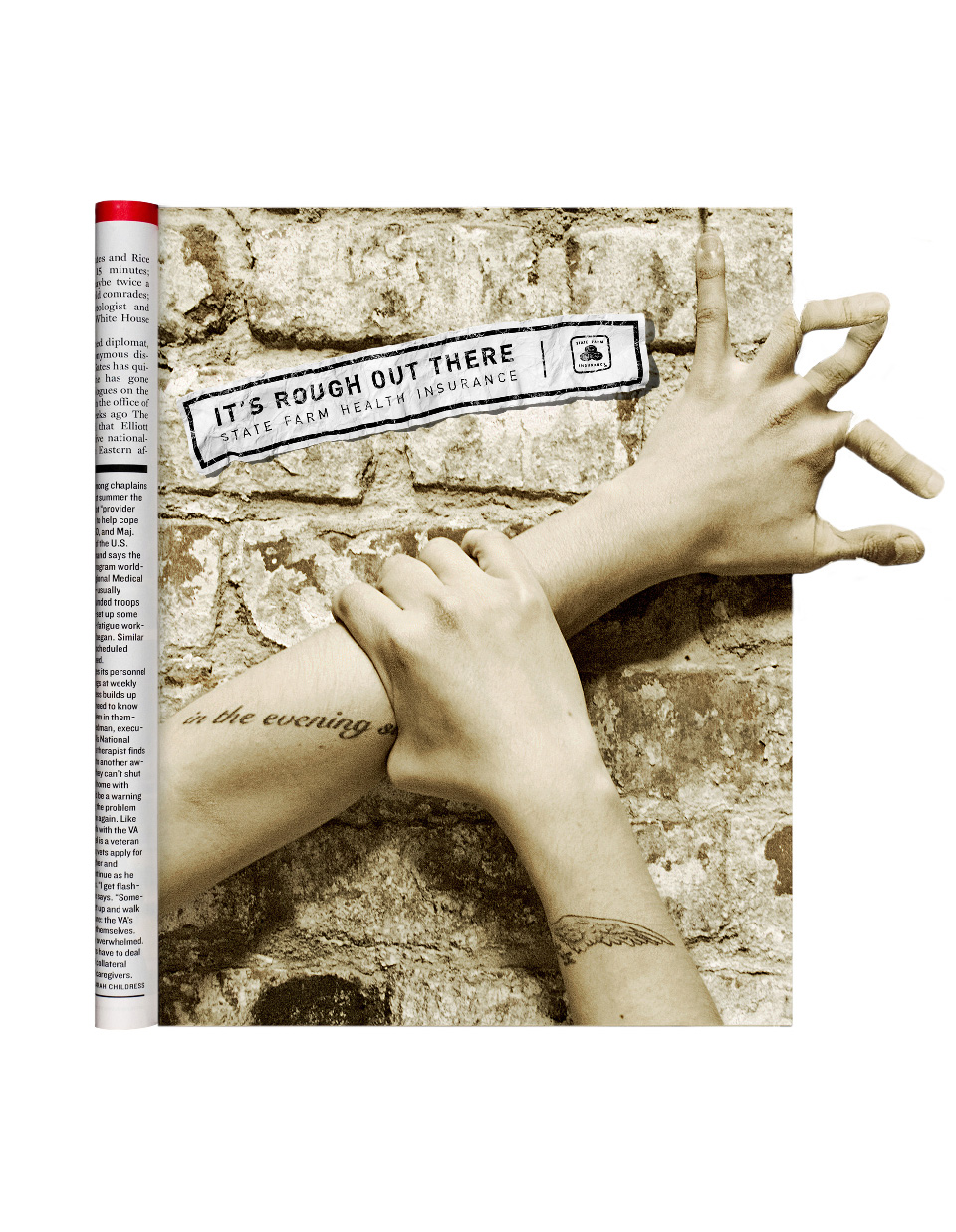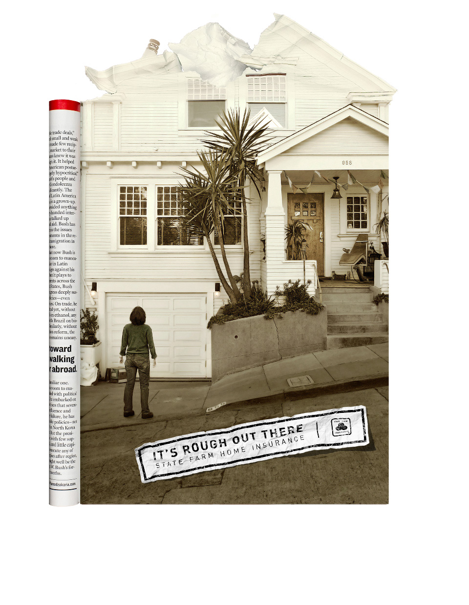 Студенческая реклама страховой компании State Farm InsuranceПеред вами студенческая работа из Miami Ad School, созданная для рекламы страховой компании State Farm Insurance. С помощью журнальной страницы, нам показали, как тяжела и сурова жизнь и предложили застраховать свое здоровье и имущество в State Farm Insurance.Надпись: "Снаружи очень трудно." Школа рекламы: Miami Ad School, Сан-Франциско, США Арт директор / Фотограф: Croix Gagnon Копирайтер: Ian Hart |
