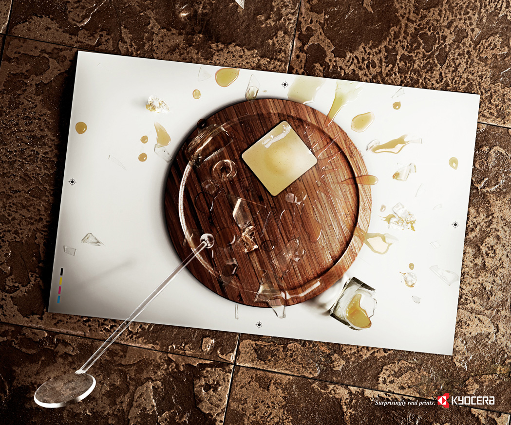 Ненастоящие подносы в рекламе принтеров KyoceraЧашка чая, стакан виски и тарелка суши, изображенные на принтах, разбились из-за того, что стояли не на подносе, как может вначале показаться, а на листах с их изображением. Таким образом колумбийское подразделение рекламного агентства Y&R Colombia показывает нам, насколько реалистичны изображения, напечатанные на принтерах марки Kyocera.Надпись: "Удивительно реалистичная печать." Агентство: Y&R Colombia Творческий директор: Rafa Barthaburu, Jaime Duque, Victor Osorio Арт директор: Jaime Duque, Fernando Murillo Копирайтер: Fabian Gomez Фотограф: German Rojas |
