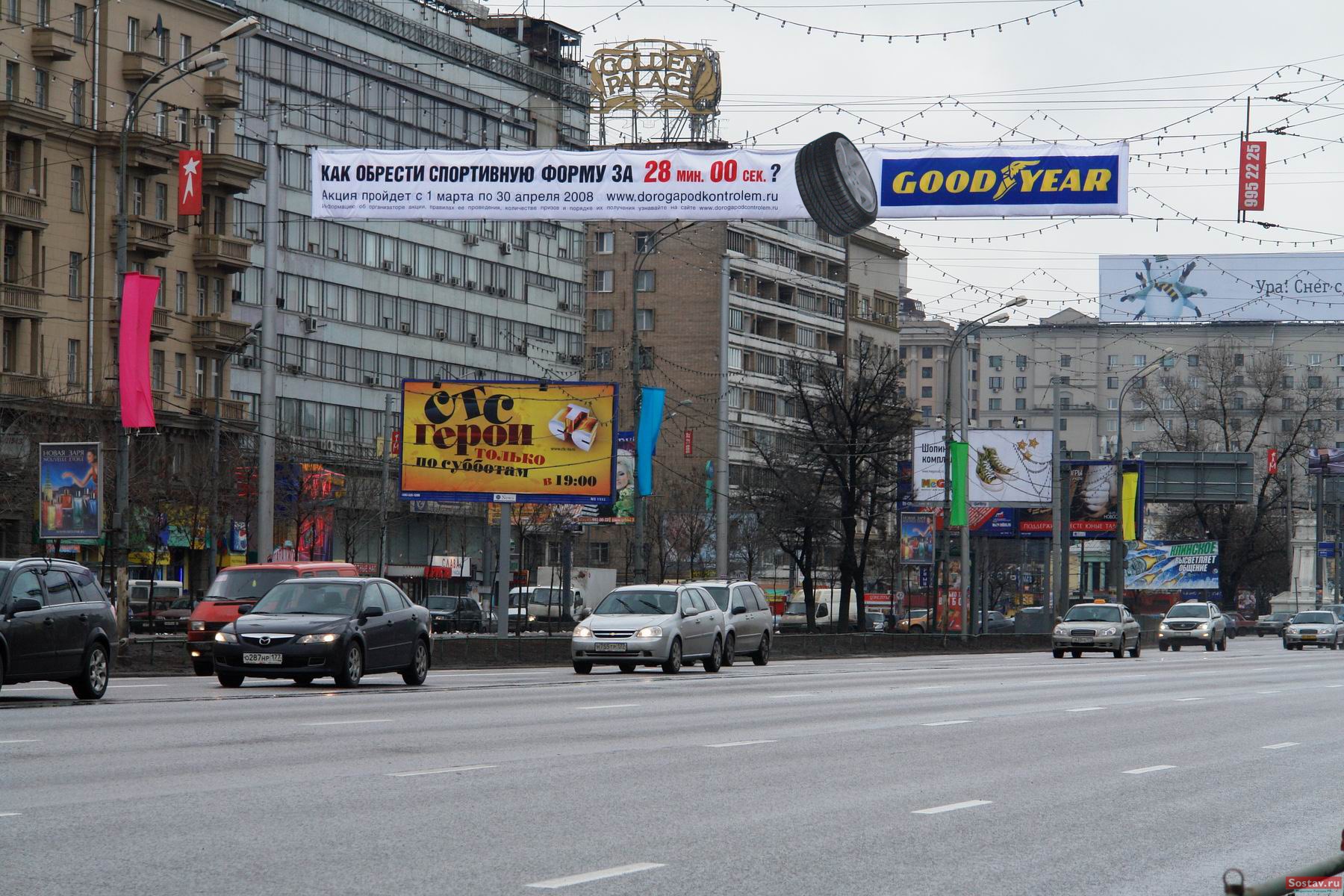 Московская Городская Реклама реализовала нестандартный проект на транспарантах-перетяжках для компании GoodyearОАО "Московская городская реклама" провела рекламную кампанию для одного из крупнейших производителей автошин в мире - компании Goodyear. Цель кампании - продвижение новых сверхскоростных шин Goodyear Eagle F1 Asymmetric, разработанных с использованием уникальной технологии "активного сцепления в повороте", что значительно улучшает управляемость при вождении по прямой и в поворотах.В рамках акции "Настройся на скорость", проводимой компанией, при покупке комплекта шин Goodyear Eagle F1 Asymmetric , покупатель получает промо-карту, которая дает право на бесплатный шиномонтаж скоростных шин Goodyear за 28 минут. В рамках проводимой рекламной кампании, в первых декадах марта и апреля, в центральной части города были размещены перетяжки с надписью "Как обрести спортивную форму за 28 мин. 00 сек." а также кратким описанием проводимой акции. Уникальной составляющей кампании стало использование выносного элемента в виде шины Goodyear по центру конструкции перетяжки, что позволило существенно увеличить эффективность рекламного сообщения и привлечь внимание автомобилистов к акции. |