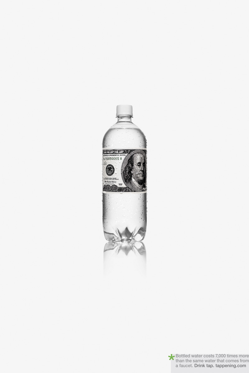 Агентство DiMassimoGoldstein призывает отказаться от бутилированной водыАмериканское рекламное агентство DiMassimoGoldstein и интернет-сайт tappening.com призывают всех отказаться от бутилированной воды. Прежде всего потому, что отходы от бутылок плохо сказываются на окружающей среде, кроме того вода в бутылках намного дороже воды из-под крана, хотя качество у нее такое же.Надпись: "В прошлом году, пластмассовые бутылки произвели более 2,5 миллионов тонн углекислого газа. Вода в бутылках стоит в 7 000 раз дороже, чем та же самая вода, но только из-под крана. Каждый год 38 миллиардов водных бутылок оказываются похороненными в земле. Пей из-под крана." Агентство: DiMassimoGoldstein, Нью-Йорк, США Творческий директор: Rich Buceta Арт директор: Kevin Gentile Копирайтер: Mike Abell Фотограф / Ретушь: Bartholomew Cooke Главный творческий директор: Mark DiMassimo |