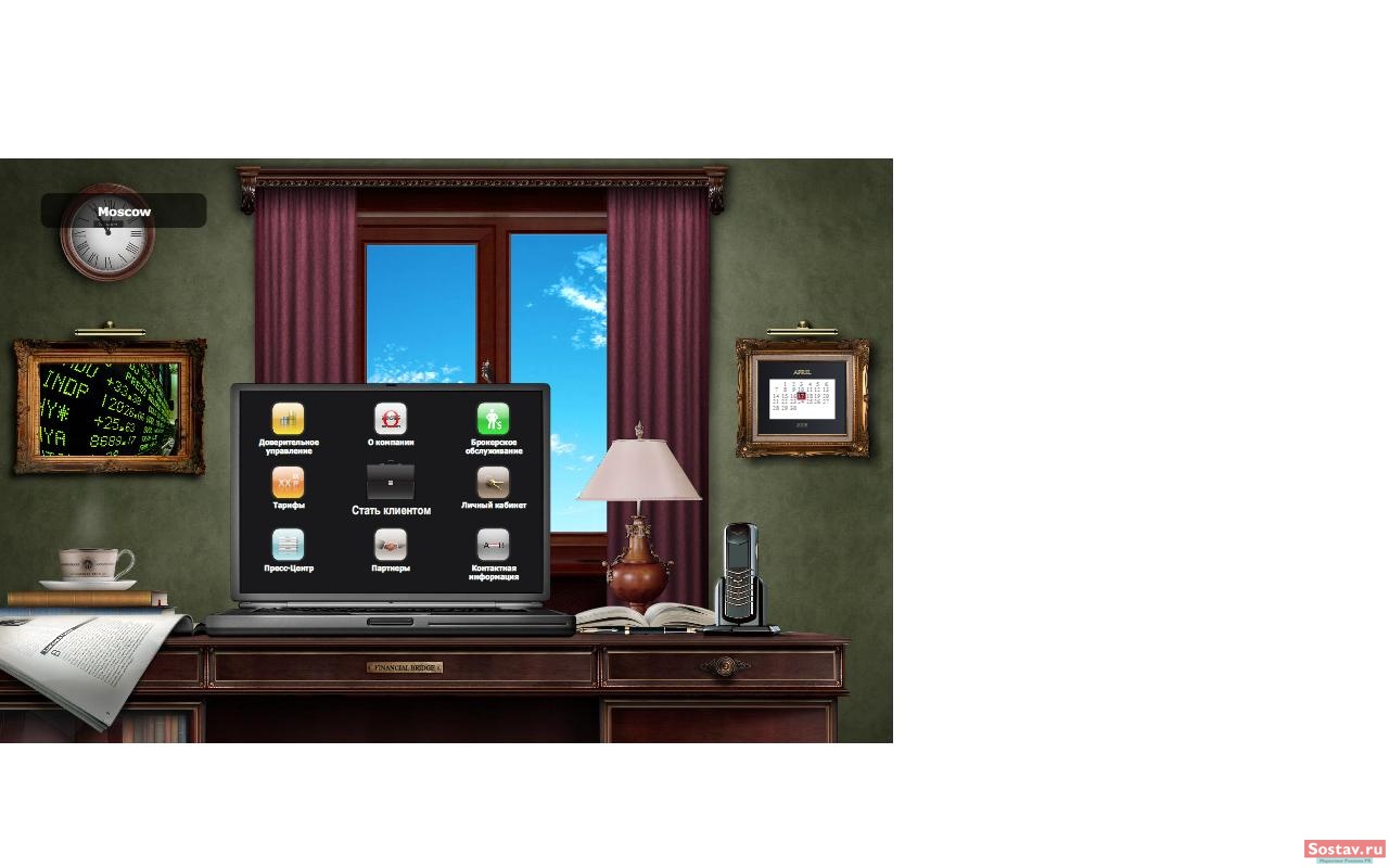 Веб-студия Ccompany разработала для Инвестиционной Компании "Файненшл Бридж" виртуальный кабинетВеб-студия Ccompany разработала новый промо-сайт для Инвестиционной Компании "Файненшл Бридж" - www.finbridge.ru.Перед исполнителем была поставлена задача в максимально доступной форме предоставить посетителям сайта информацию об услугах и направлениях деятельности компании, одновременно внедрив "игровой" элемент в визуальное оформление. Для этого специалисты Ccompany разделили сайт на две составляющие: визуальную часть (главная страница) и часть информационную (внутренние страницы). Визуальная часть, выполненная в виде уютного рабочего кабинета, выводит на главную страницу основную информацию о сфере деятельности компании, об услугах и тарифах, о текущих новостях и пресс-релизах, позволяет одним наведением курсора на визуальный элемент ("телефон") увидеть полные контактные данные и схему проезда, клиенту - попасть в личный кабинет. Словом, визуальная часть объединяет в себе ключевые моменты, приоритетные для пользователя при знакомстве с сайтом организации. Таким образом, параллельно была решена проблема визуального упрощения навигации, быстрый доступ к основным разделам сайта осуществлен посредством размещения на странице "иконок". Последним штрихом были внесены flash-элементы, оживившие визуальное восприятие: возможность выбора одного из трех часовых поясов (Москва, Лондон, Нью-Йорк), изменение текущего времени на настенных часах и времени суток за окном кабинета в соответствии с выбором часового пояса, вывод в раме картины на стене изображения, указывающего на текущее состояние рынка. Внутренняя часть несет полноценную информативную нагрузку и так же имеет довольно простую и удобную навигацию. |