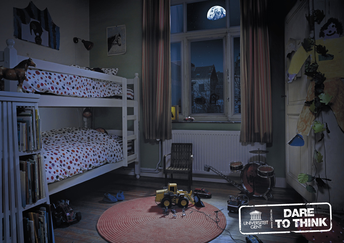 University of Gent: не бойтесь думатьМногим людям для осуществления своих желаний не хватает самой малости - бросить вызов устоям социума и не боятся думать вопреки шаблону. University of Gent и агентство Saatchi & Saatchi демонстрируют, что это более чем возможно и не выходит за грани фантастики.Агентство: Saatchi & Saatchi Brussels, Belgium Креативный директор: Jan Teulingkx Арт директор: Ilse Pierard Копирайтер: Raf de Smet Фотограф: Michael Meyersfeld, Evert Thiry, Kris van Beek |