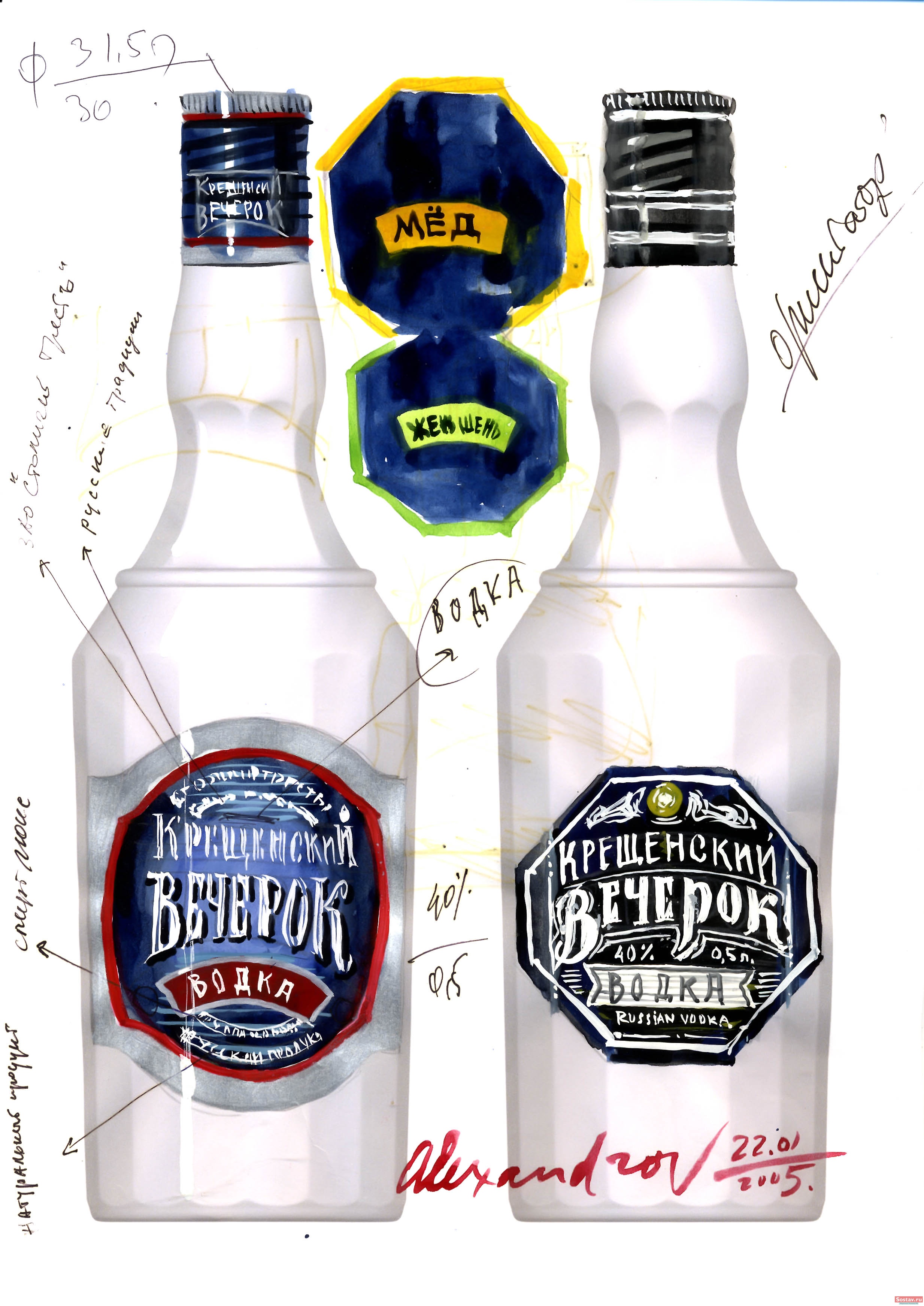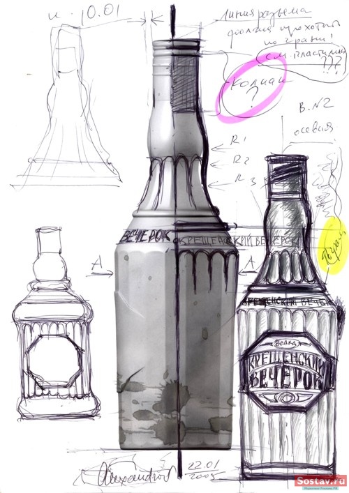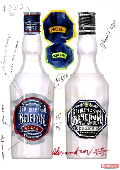 В дизайне формы бутылки и этикетки авторы постарались передать ощущения русского народного праздника. Имя торговой марки , предложенное заказчиком и к сказочному вечеру и предвкушению чудес.