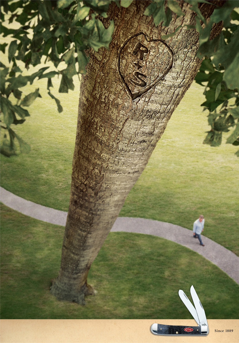 Ножи W.R. Case & Sons Cutlery Co. служат влюбленным уже очень давноКомпания W.R. Case & Sons Cutlery Co. занимается производством ножей, в том числе и перочинных. А именно их обычно используют, чтобы оставить памятную надпись на дереве. Американское агентство Blattner Brunner показало на этом плакате дерево, на котором двое оставили свидетельство своей любви, вот только было это очень давно и растение успело сильно вырасти.Надпись: "С 1889 года." Агентство: Blattner Brunner, Атланта, США Главный творческий директор: Jay Giesen Творческий директор: Brett Compton Арт директор: Rick Bryson Копирайтер: Brett Compton, Rick Bryson Ретушь: Mind's Eye, Atlanta |