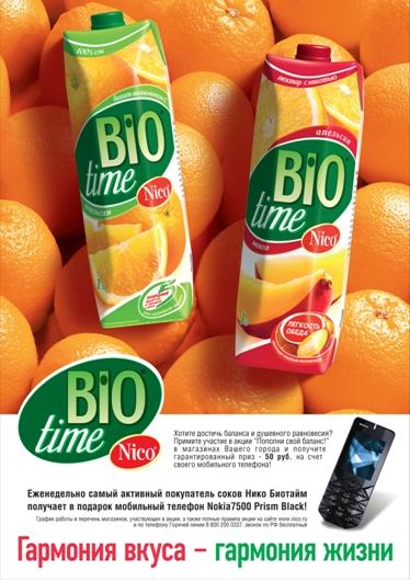 В марте компания «Мултон» начала национальные продажи Nico Biotime. Так, уже началась акция под названием "Пополни свой баланс!" с Nico Biotime. Основными задачами промо-кампании стали стимулирование пробной покупки и анонсирование запуска брэнда в ключевых городах. Акция проводится в период с апреля по май 2008 года в крупнейших городах России - Москве, Екатеринбурге, Новосибирске, Челябинске, Уфе, Самаре, Нижнем Новгороде, Казани, Владивостоке, Красноярске, Краснодаре и Ростове-на-Дону. В акции принимают участие все вкусы и все объемы упаковки торговой марки. Состав творческой группы Клиент: Мултон Директор по маркетингу: Татьяна Третьяченко Бренд-менеджер: Дарья Васильева Агентство: Leo Burnett Moscow Креативный директор: Михаил Кудашкин Креативная пара: Арина Авдеева, Вера Карпова Директор по стратегическому планированию: Мария Тиунова Менеджер по стратегическому планированию: Сергей Денисов Эккаунт-директор: Татьяна Зарайская Head of TV-production: Ирина Новикова Продакшн: ProFilm (Москва), Rabel (Тель-Авив) Продюсеры продакшна: Андрей Труков (ProFilm), Amit Dekel (Rabel) Режиссер: Eli Sverdlov