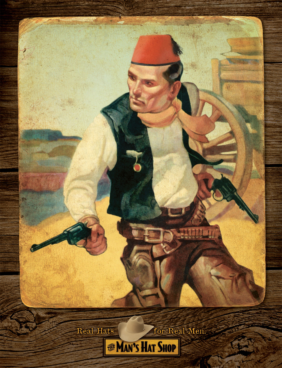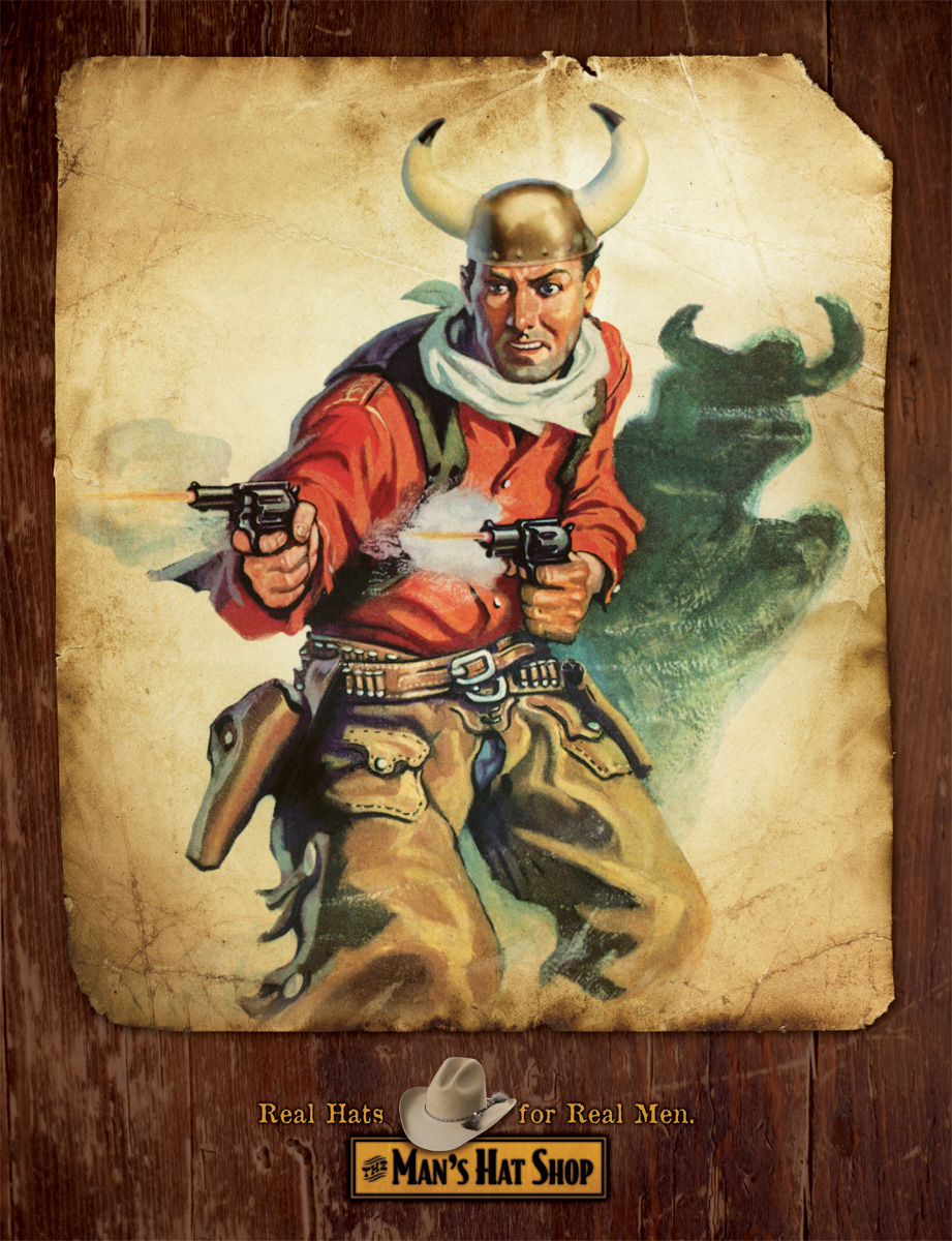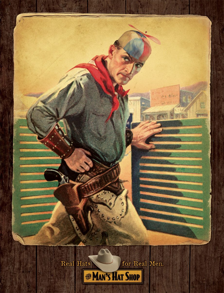 Реально круто? Без шляпы из Man's Hat Shop - нет!Мужчина может быть красив, силен и бесстрашен, но если при этом он носит не подходящую ему шляпу, то он никогда не будет выглядеть круто. Американское рекламное агентство Esparza Advertising рассказывает нам, что шляпы из магазина мужских головных уборов Man's Hat Shop сделают из вас по-настоящему реального мужика.Надпись: "Реальные шляпы для реальных мужиков." Агентство: Esparza Advertising, Альбукерке, Нью-Мексико, США Творческий директор / Копирайтер: Adam Greenhood Арт директор: Kerri Kowal Иллюстратор: Ted Slampyak, J. Falter, Albin Genning, Paul Stah |