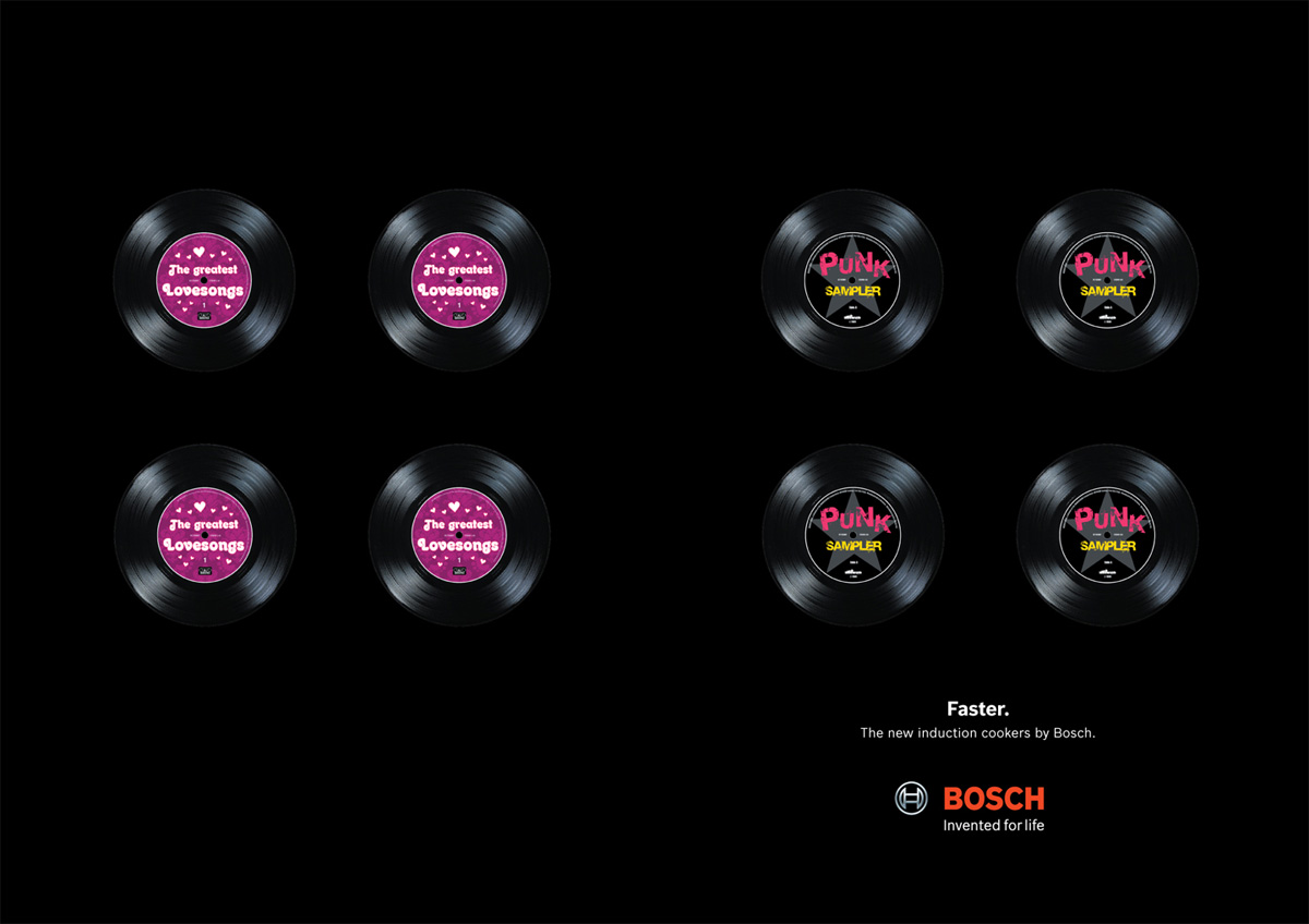 Индукционные плиты Bosch: быстрее, удобнее и современнееИндукционные плиты используют для нагрева посуды явление электромагнитной индукции, поэтому дно посуды нагревается намного быстрее, рассказывает нам немецкое рекламное агентство Jung von Matt. Если вы используете подходящую посуду, то благодаря передовым технологиям процесс приготовления на индукционных плитах Bosch будет быстрее и удобнее.Надпись: "Более быстрые. Более удобные. Более передовые. Новые индукционные плиты от Bosch" Агентство: Jung von Matt, Гамбург, Германия Творческий директор: Arno Lindemann, Bernhard Lukas Арт директор: Jonas Keller Копирайтер: David Leinweber Дизайнер: Julia Stoffer |