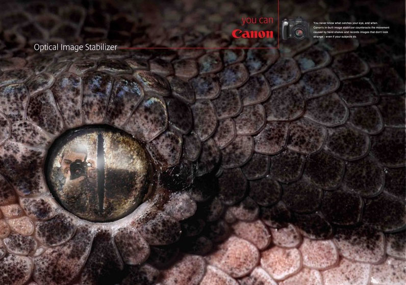 Canon: Загляни в глаза зверюБлагодаря тому, что фотоаппараты Canon оснащены оптическим стабилизатором изображения, вы легко сможете запечатлеть самые интересные события в вашей жизни, не зависимо от того двигается объект съемки или находится в покое. Принты от агентства GREY WORLDWIDE иллюстрируют для потребителя эффективность новинки. С фотоаппаратами Canon вы сможете сделать любой снимок.Надпись: "Ты можешь" Агентство: GREY WORLDWIDE, Dubai Исполнительный Креативный директор: Danny Higgins Крейтивный директор: Alisdair Miller Копирайтер: Vidya Manmohan Арт директор: Alisdair Miller |