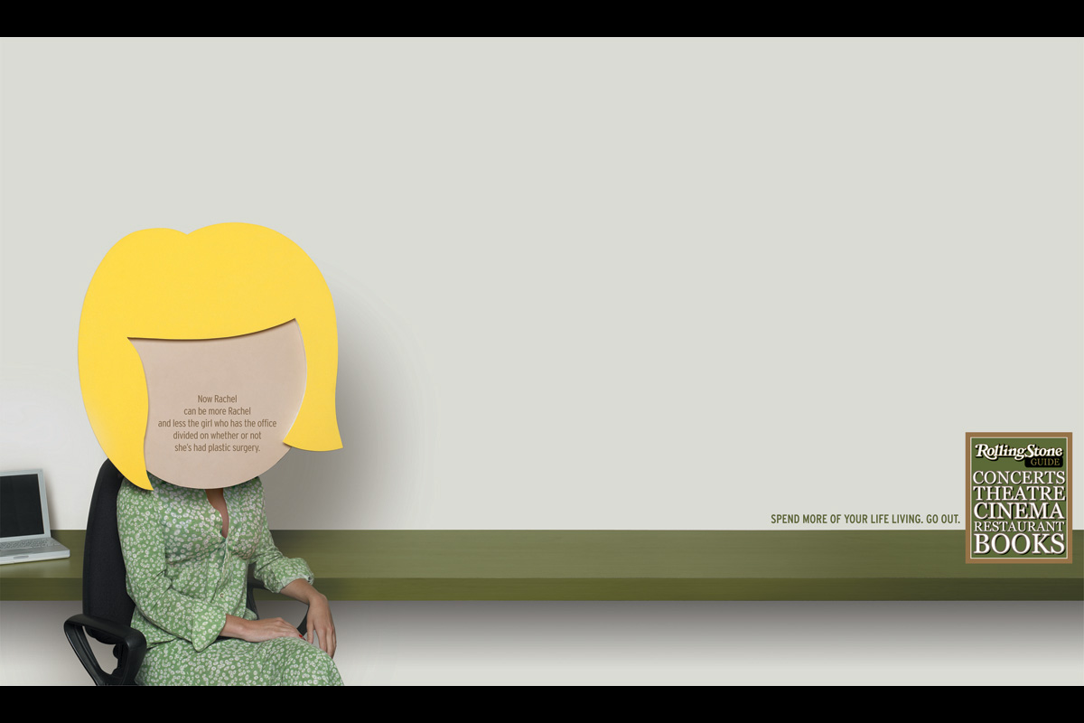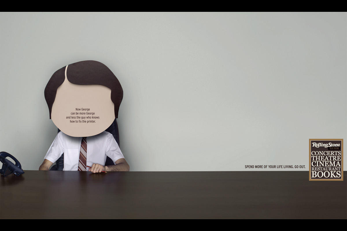 RollingStone guide укажет верный путь в сторону счастливой жизниМногие люди настолько увлечены своей работой, что не видят ничего, кроме офиса и работы. Изо дня в день одно и то же. Гид по местам досуга RollingStone guide и агентство la comunidad предлагают общественности скинуть с себя оковы "системы", перестать быть неприметным парнем или девушкой из офиса, каких миллионы, и начать жить полноценной жизнью.Агентство: la comunidad, Buenos Aires, Argentina Исполнительные креативные директора: Joaquin Molla, Jose Molla Копирайтер: Santiago Luna Lupo Арт директор: Leandro Mosca Ретушь: Hernan Sanchez / Gryp |