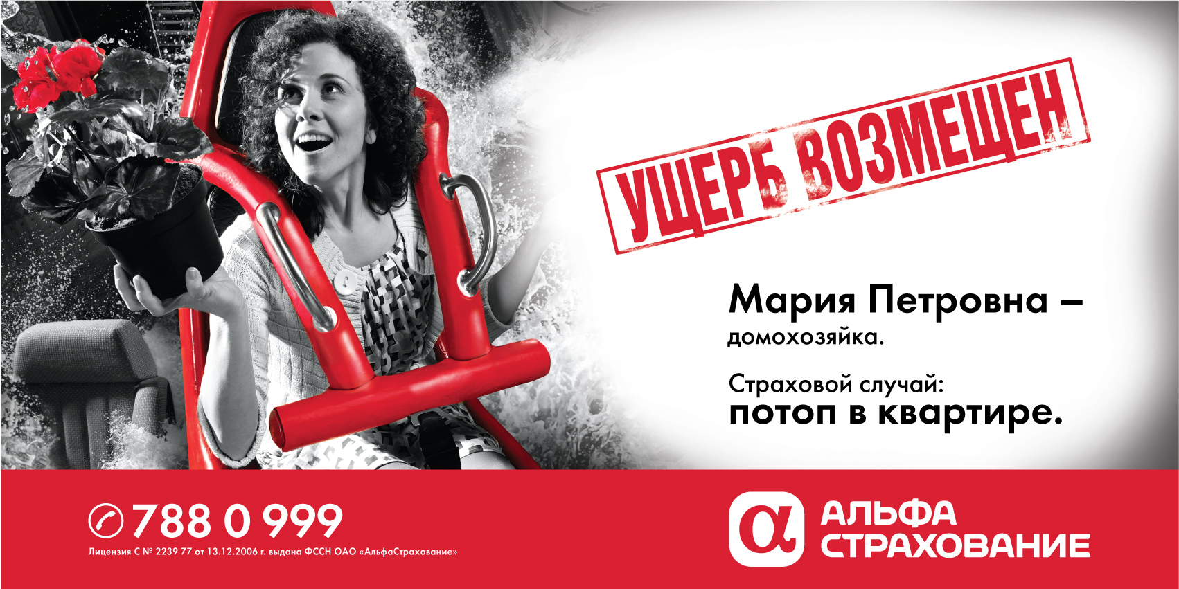 Группа "АльфаСтрахование" запустила в апреле новую рекламную кампанию. Основной задачей кампании является поддержание имиджа ОАО "АльфаСтрахование" как надежного страхового партнера, который оперативно урегулирует убытки по страховым случаям, и понимает насколько это важно для клиентов.