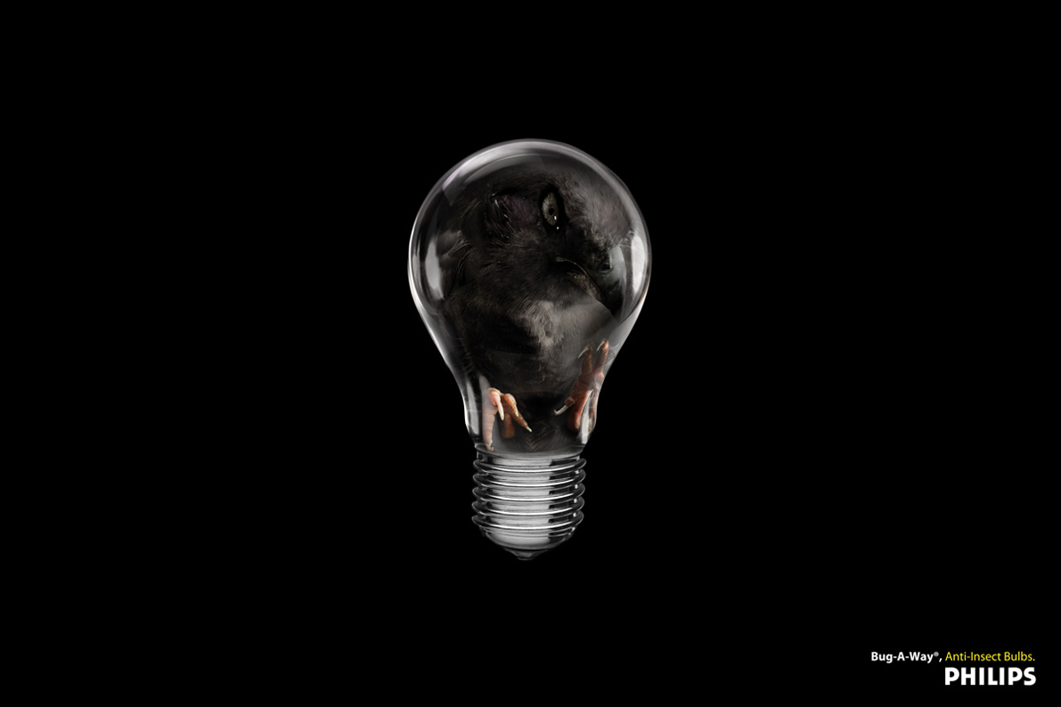 Philips придумал лампочки, не видимые насекомымЛампочки Philips с технологией Bug-A-Way имеют специальный желтый фильтр, благодаря которому свет не виден многим насекомым и, как следствие, меньше привлекает их. Чтобы прорекламировать этот продукт, чилийское рекламное агентство DDB Chile решило засунуть в лампочки таких извечных врагов летающих насекомых, как лягушка, паук или птица.Текст: Bug-A-Way, Лампы против насекомых Агентство: DDB Chile Творческий директор: Alejandro Arriagada Арт директор: Marcelo Oclander, Renato Freeman Копирайтер: Felipe Bobadilla Agouborde Фотограф: Ram?n Serrano |