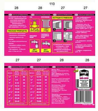 Промо-этикетка на универсальную нить "Тангит Уни-Лок" изготовлена в виде компактного буклета, который содержит иллюстрированную инструкцию по применению продукта и его подробные технические характеристики.