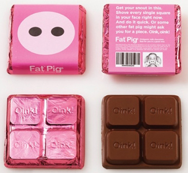 С первого взгляда, упаковка шоколада Fat Pig Chocolate выглядит вполне симпатично. И даже не смущают наличие пятачка на обертке и обилие розового поросячьего цвета. Все хорошо, пока вы не прочитаете инструкцию.
